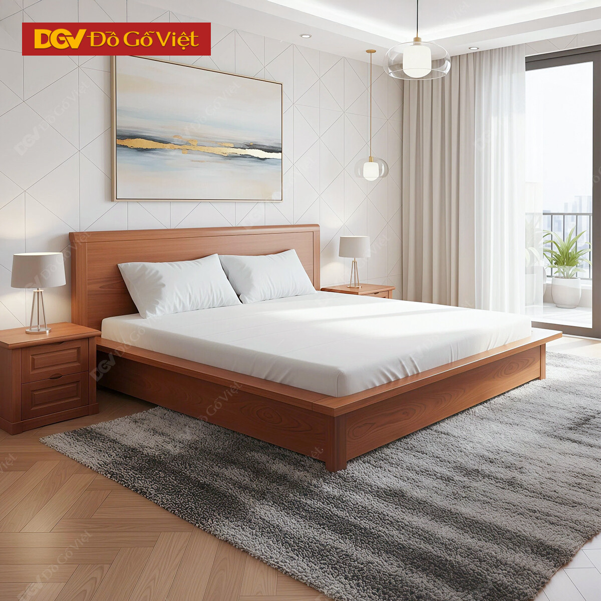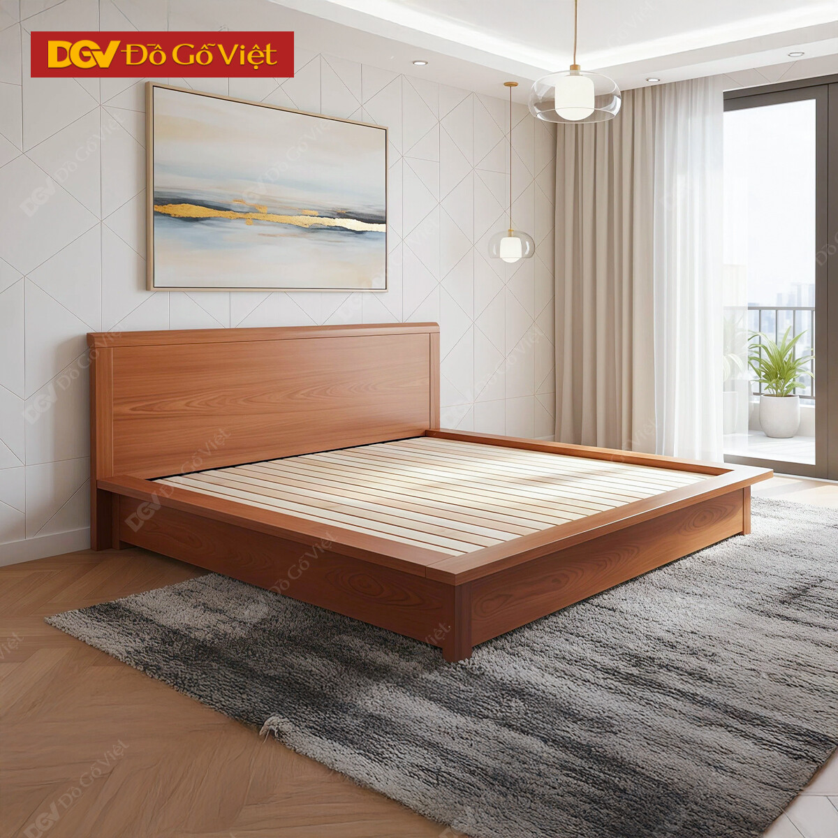 Giường Ngủ Kiểu Nhật Gỗ Veneer Xoan Đào Tối Giản Hiện Đại
