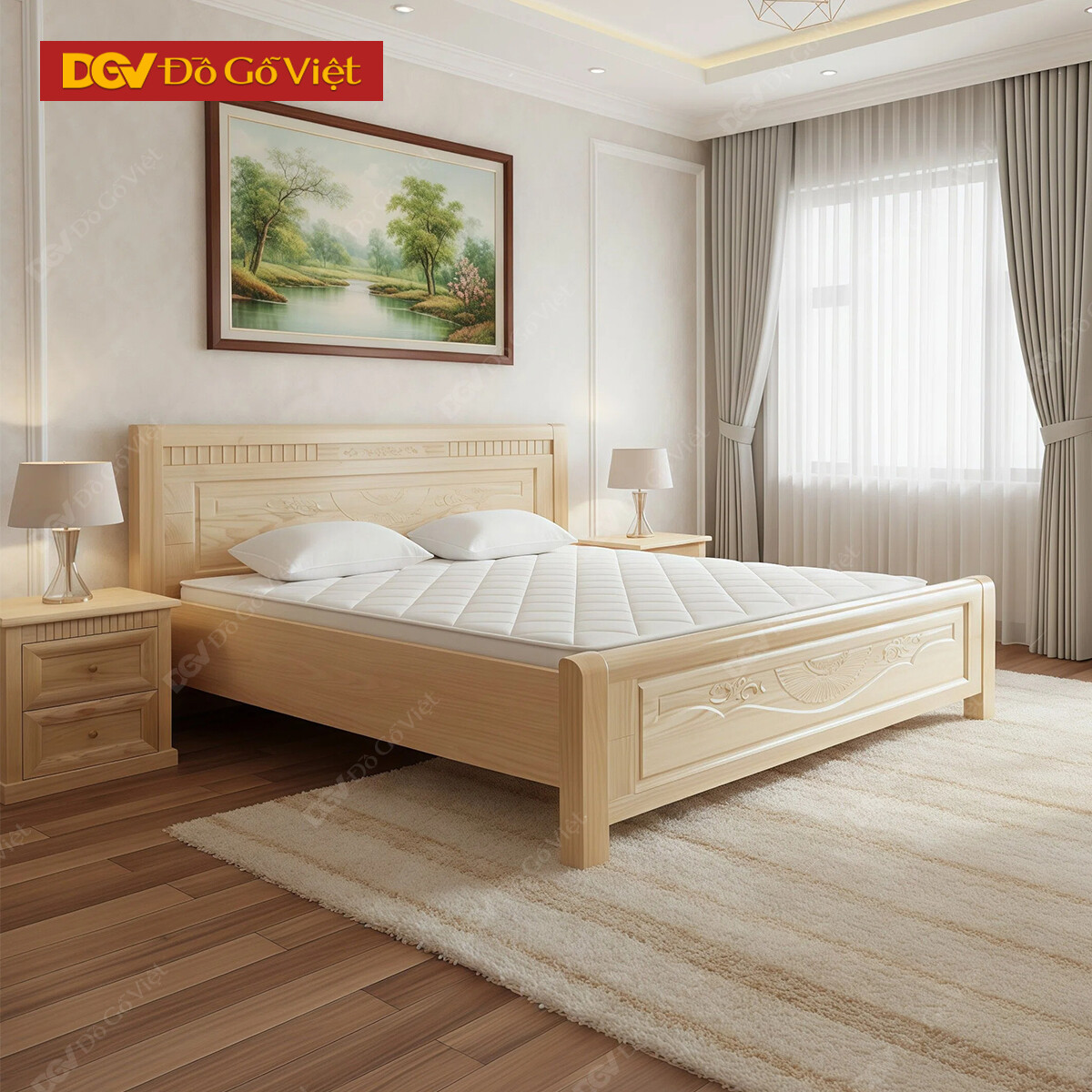 Giường Ngủ Sồi Nga Mẫu Hoa Lan Màu Tự Nhiên Thanh Lịch