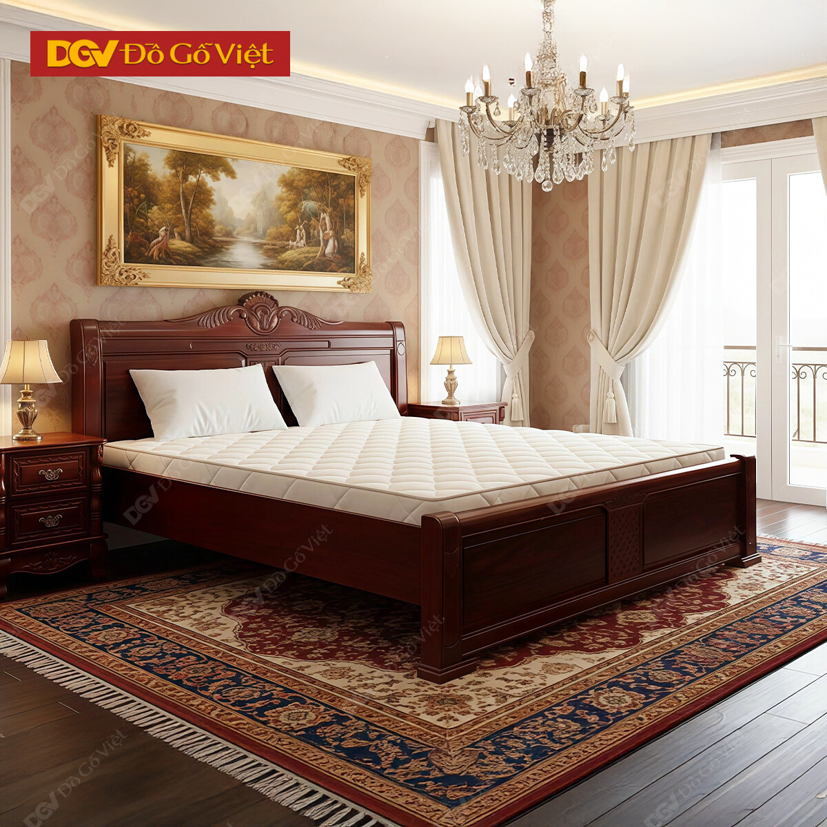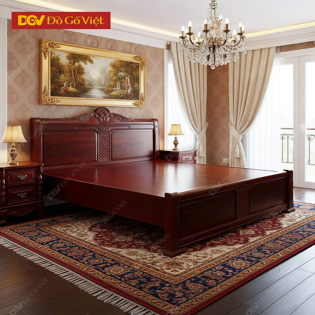 Giường Ngủ Tân Cổ Điển Gỗ Cẩm Màu Nâu Đỏ Sang Trọng