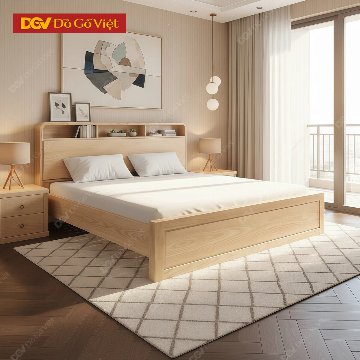 Giường Sồi Nga Thiết Kế Hiện Đại Có Kệ Đầu Giường Tiện Ích