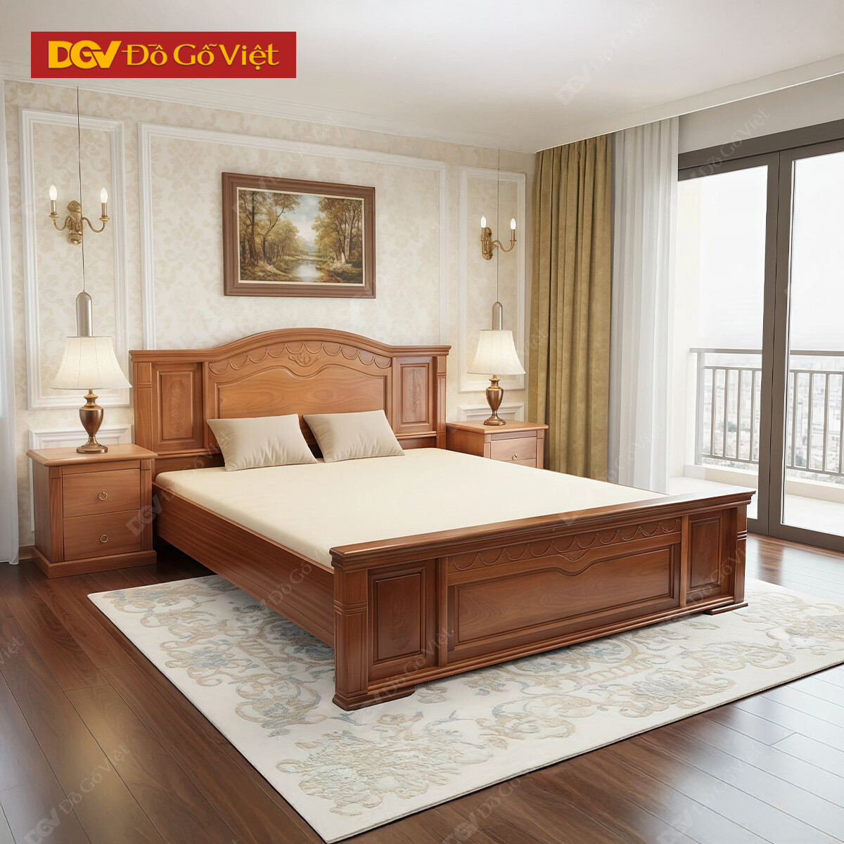 Giường Ngủ Xoan Đào Mẫu Nữ Hoàng Chạm Hoa Truyền Thống