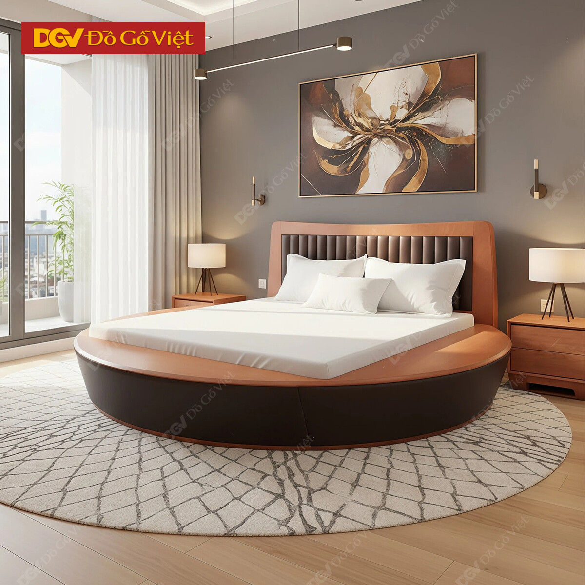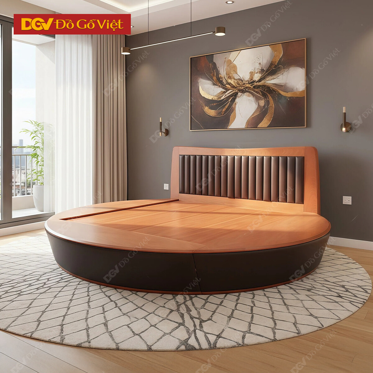 Giường Xoan Đào Kiểu Dáng Tròn Đầu Bọc Nệm Hiện Đại