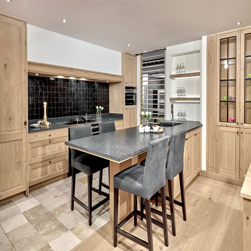 Tủ Bếp Chữ U Gỗ Veneer Sồi Kiểu Dáng Hiện Đại Tinh Tế