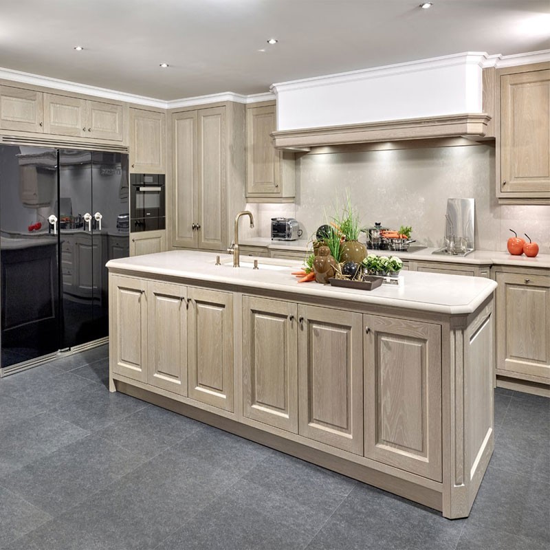 Tủ Bếp Chữ U Gỗ Veneer Sồi Kiểu Dáng Hiện Đại Tinh Tế