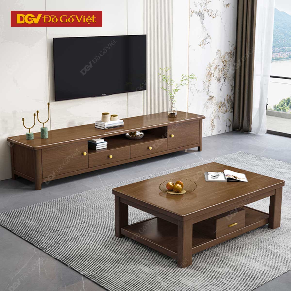 Kệ Tivi Cổ Điển Gỗ Cao Su Veneer Sồi Màu Óc Chó Đẹp Rẻ
