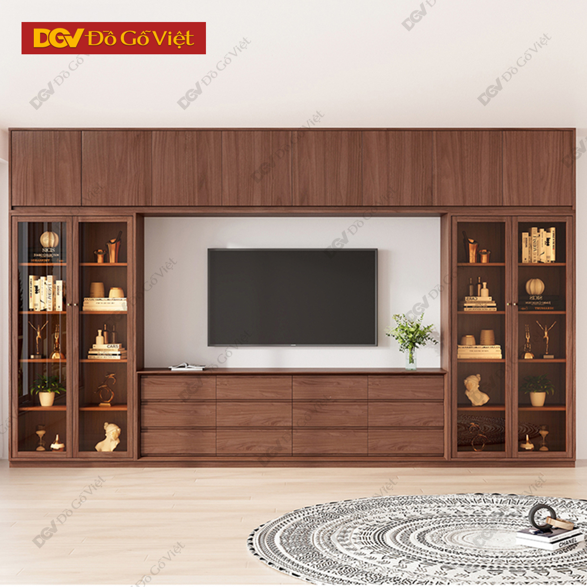 Kệ Tivi Gỗ MDF Hiện Đại Với Hệ Ngăn Kéo Và Tủ Kính Tiện Ích