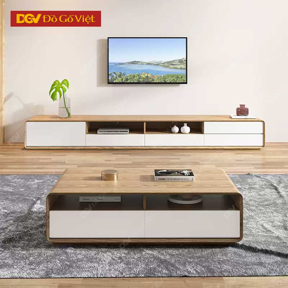 Kệ Tivi Gỗ Tự Nhiên Màu Vàng Sồi Phối Trắng Đẹp Tiện Dụng