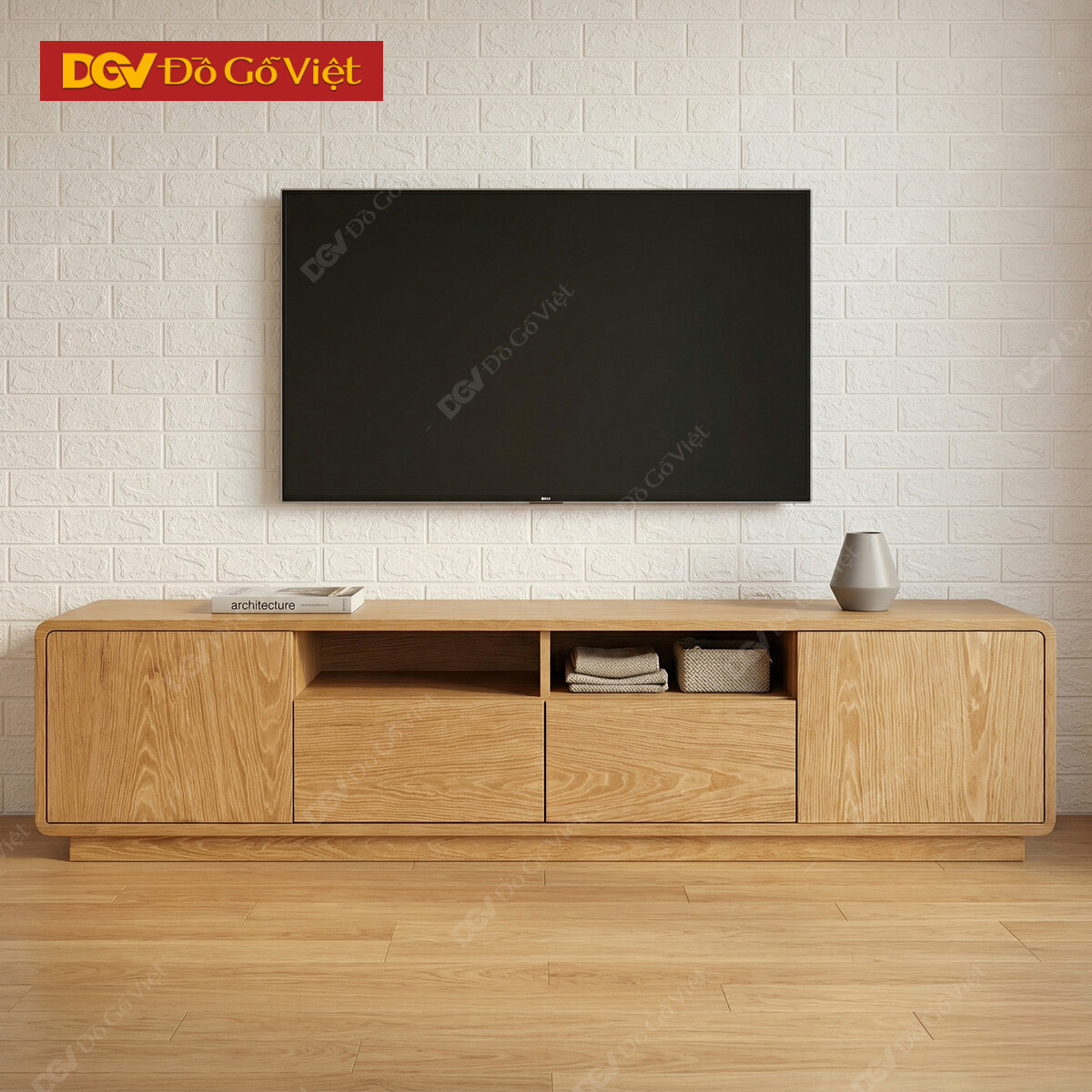Kệ Tivi Gỗ Veneer Sồi Dáng Bệt Bo Cạnh Phối Ngăn Kéo