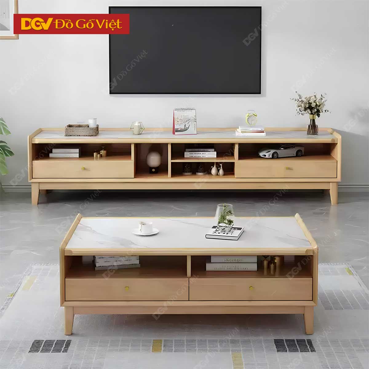 Kệ Tivi Phòng Khách Gỗ Cao Su Vân Sồi Thanh Lịch