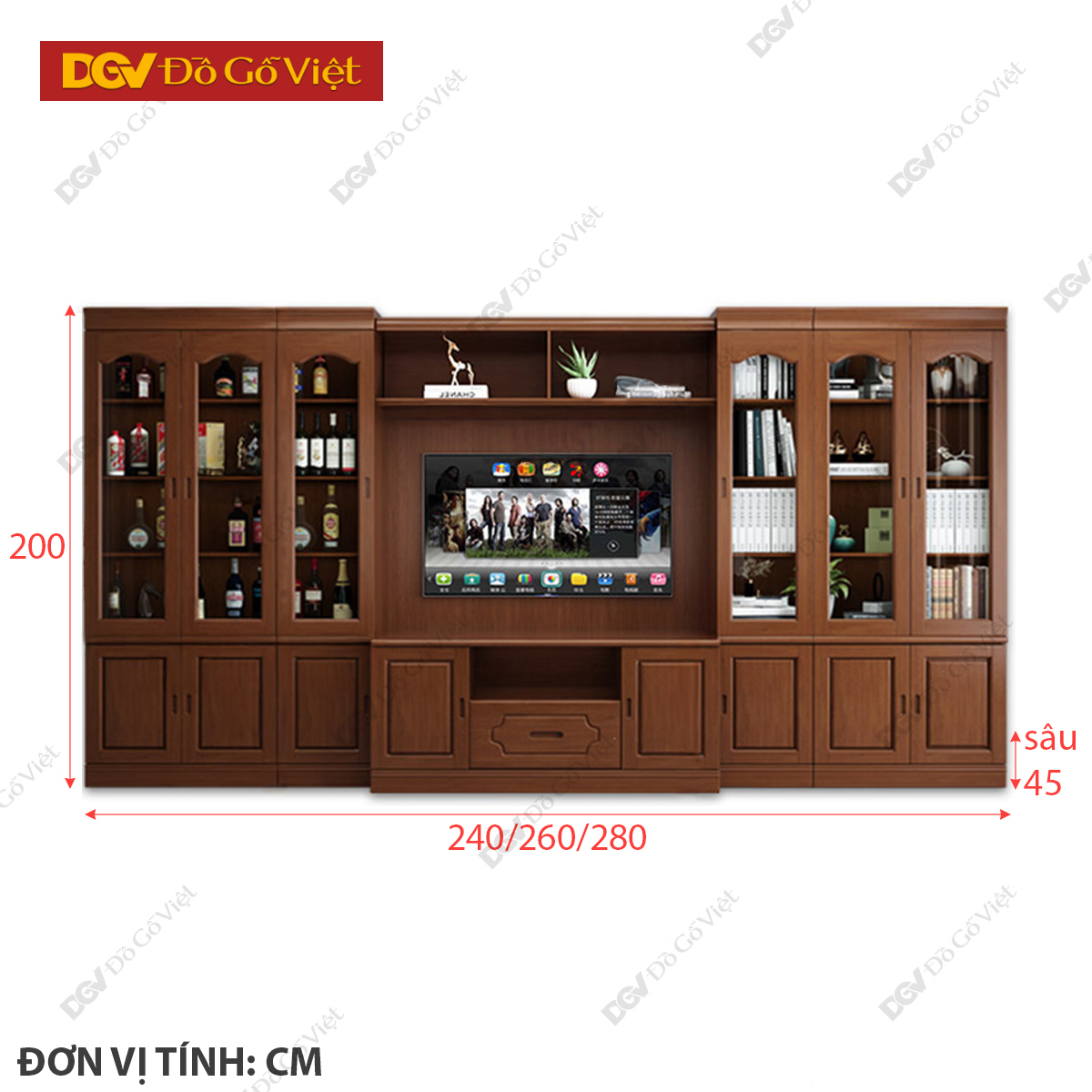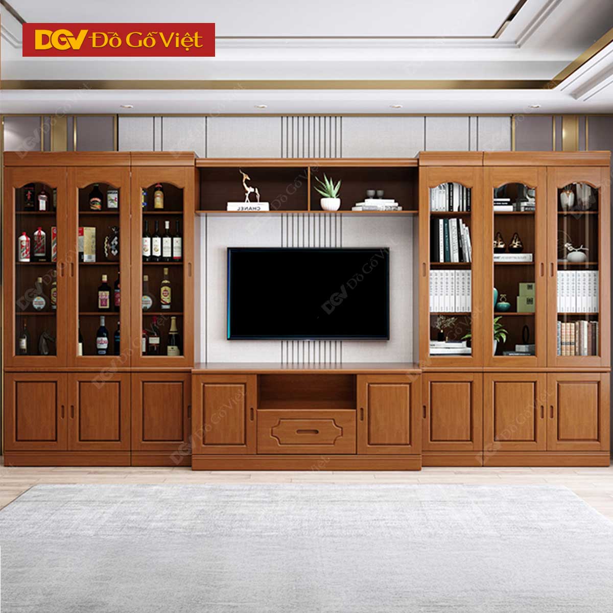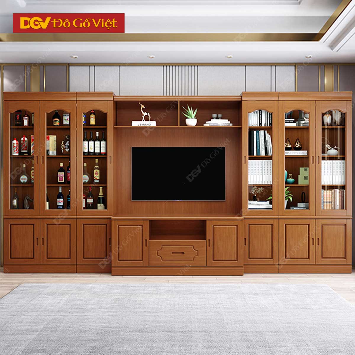 Tủ Trưng Bày Gỗ Veneer Sồi Kết Hợp Kệ Tivi Phòng Khách