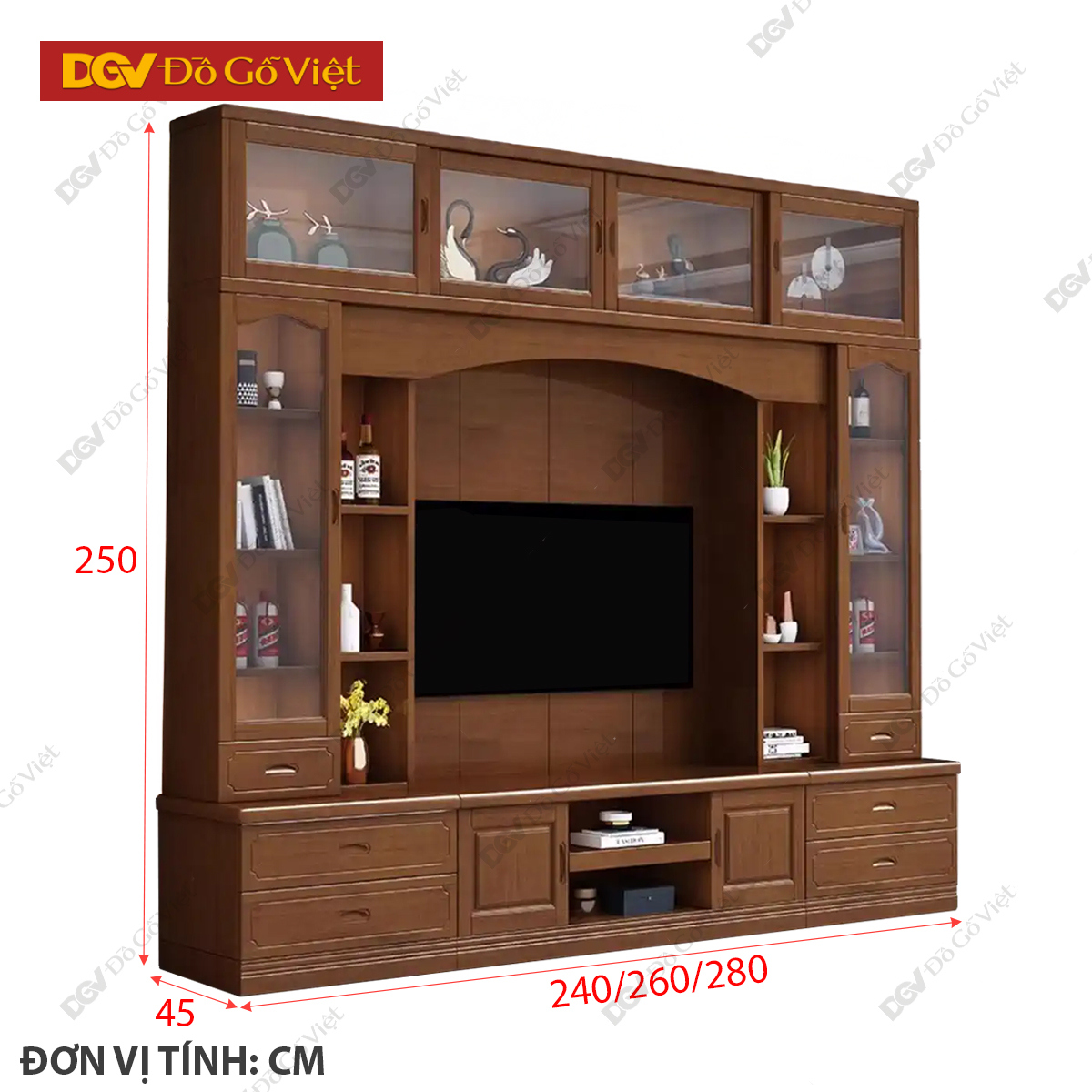 Kệ Tivi Gỗ Sồi Kết Hợp Tủ Kính Trưng Bày Rộng Rãi