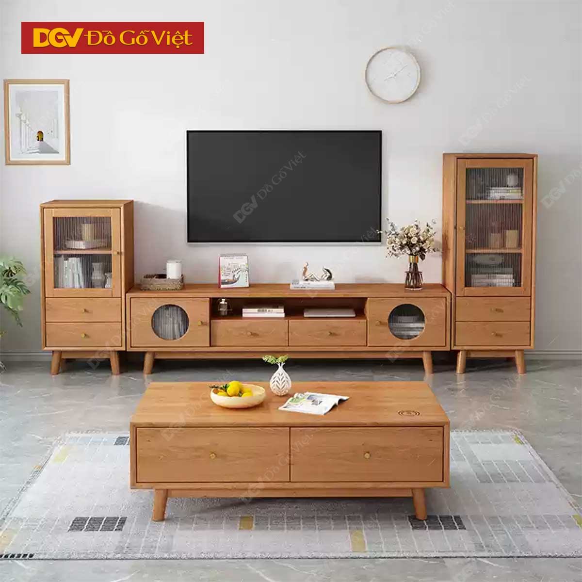 Kệ Tivi Phòng Khách Gỗ Cao Su Vân Sồi Thanh Lịch