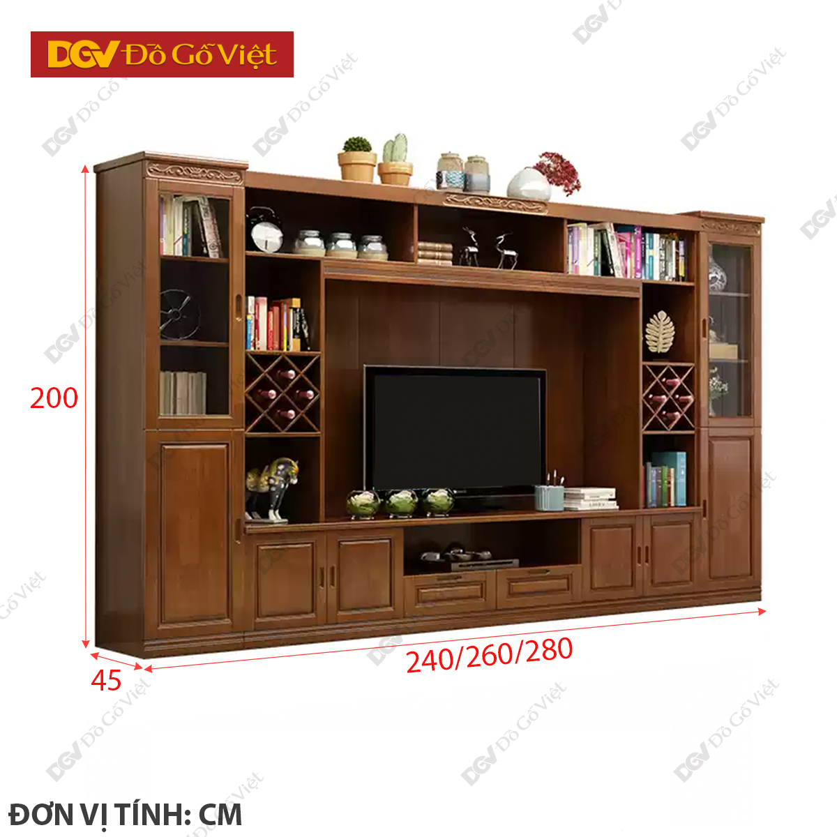 Kệ Tivi Gỗ Xoan Đào Kèm Tủ Trang Trí Màu Nâu Đỏ Đẹp