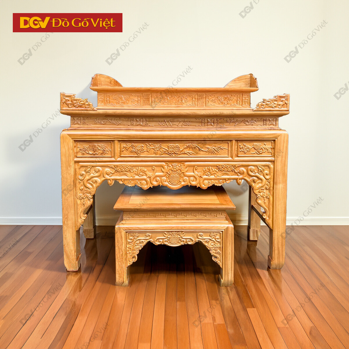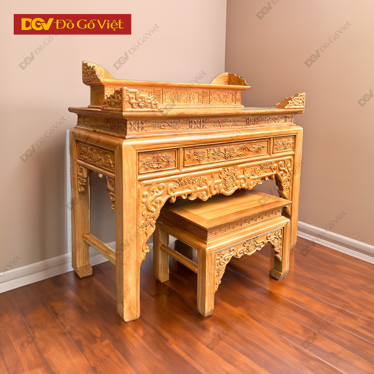 Án Gian Thờ Gỗ Gõ Đỏ 1m27 Mẫu Chạm Sen Cao Cấp
