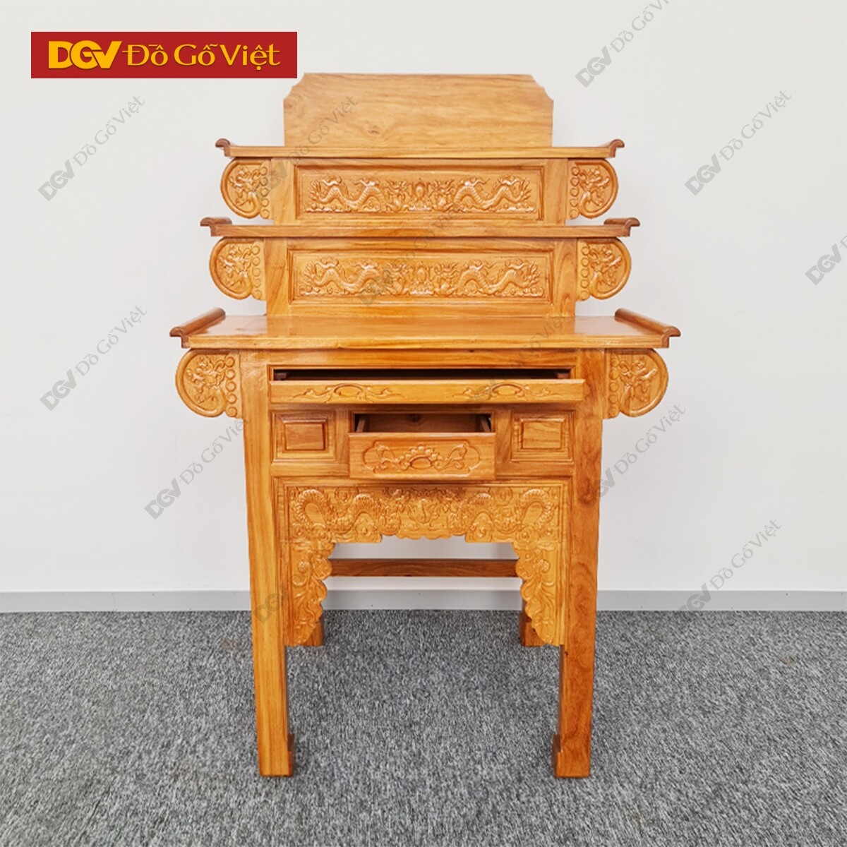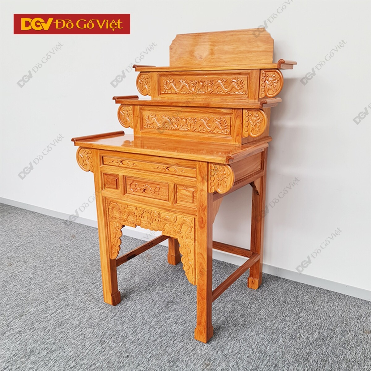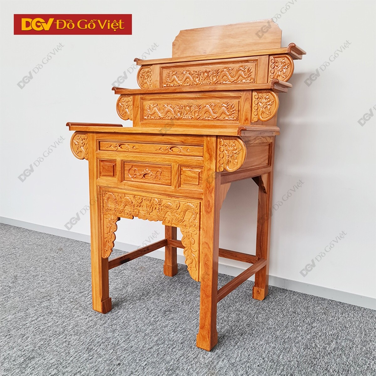 Bàn Thờ 2 Tầng Gỗ Gõ Đỏ Chạm Rồng 1m27