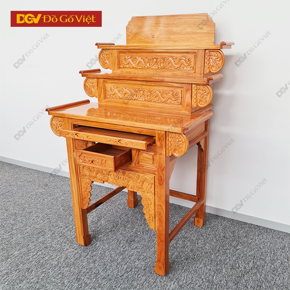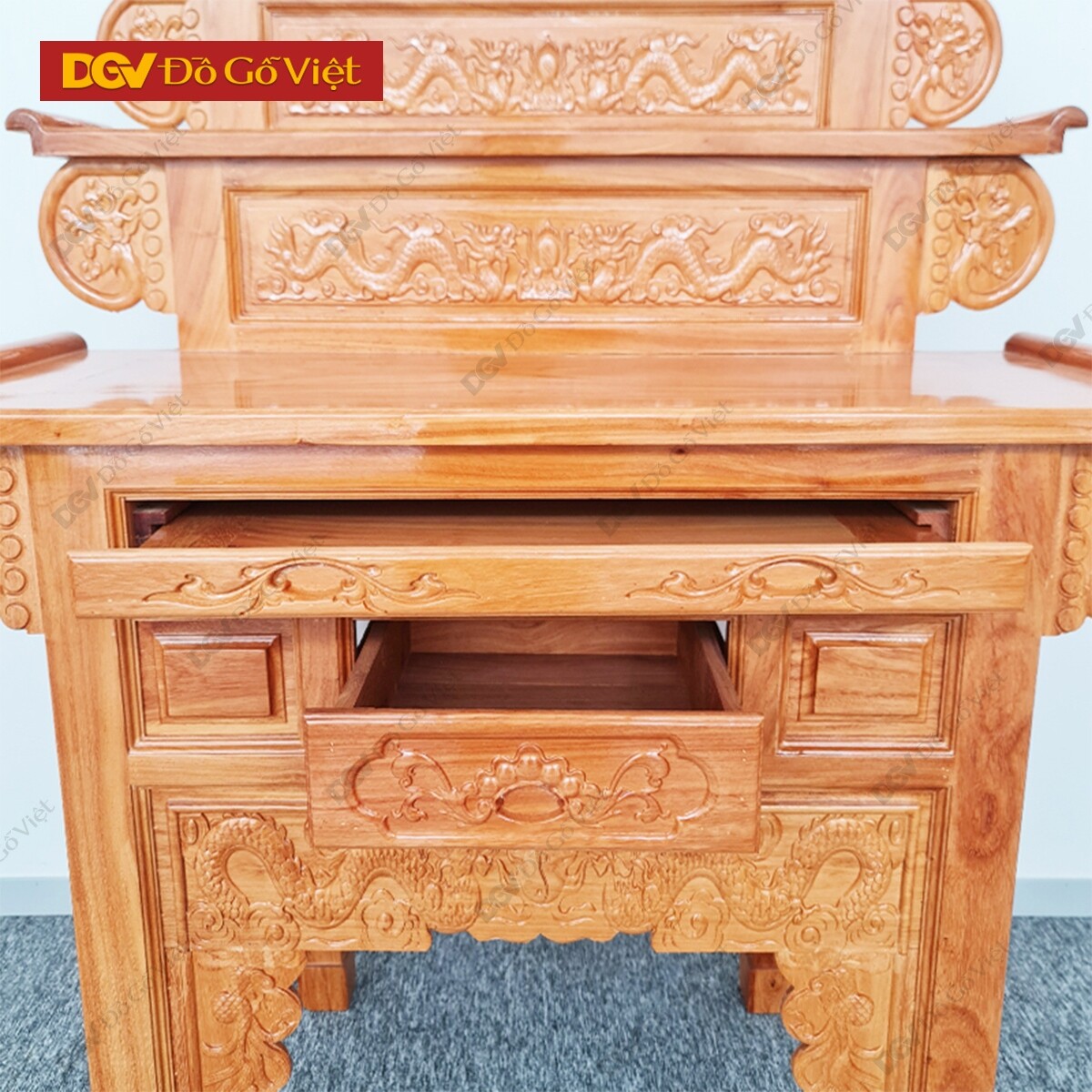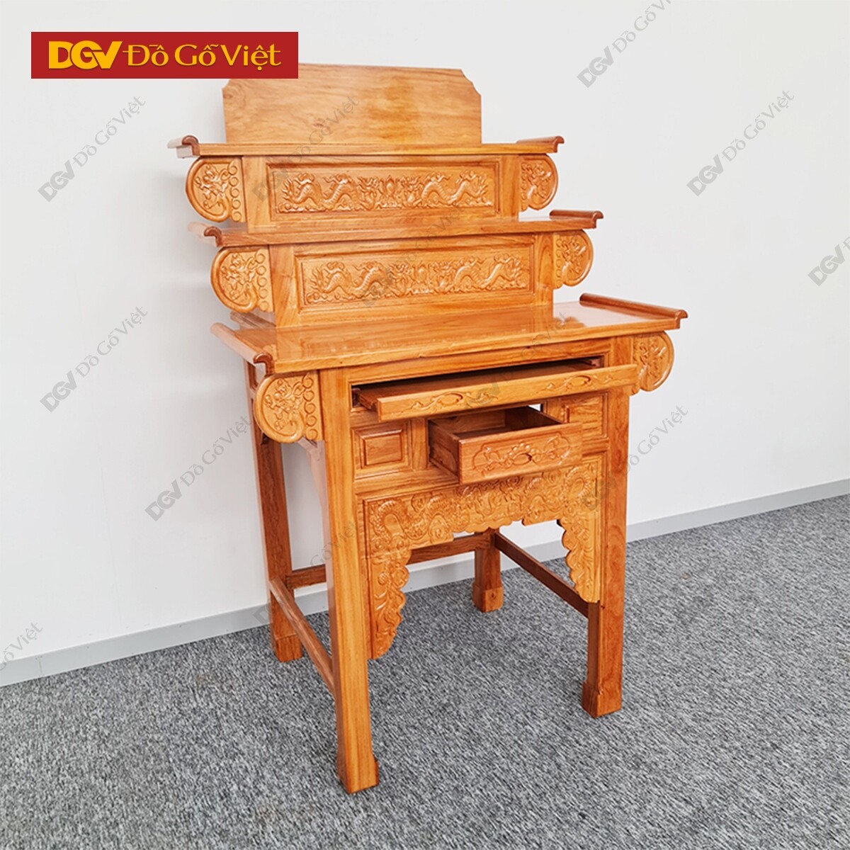 Bàn Thờ 2 Tầng Gỗ Gõ Đỏ Chạm Rồng 1m27