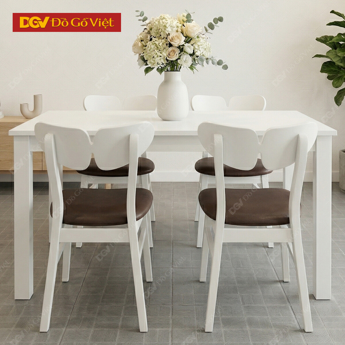 Bộ Bàn Ăn Gỗ Cao Su Veneer Sồi Họa Tiết Kẻ Pano Tựa Nan