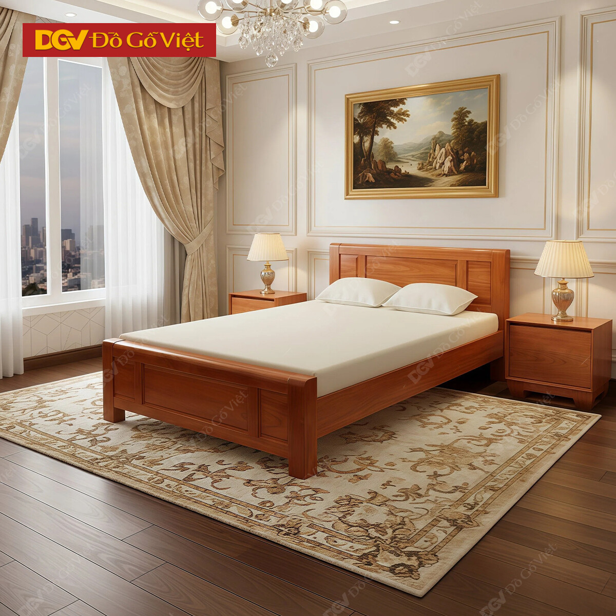 Mẫu Giường Gỗ Xoan Đào Pano Trơn Nhỏ Gọn Cho Phòng Ngủ