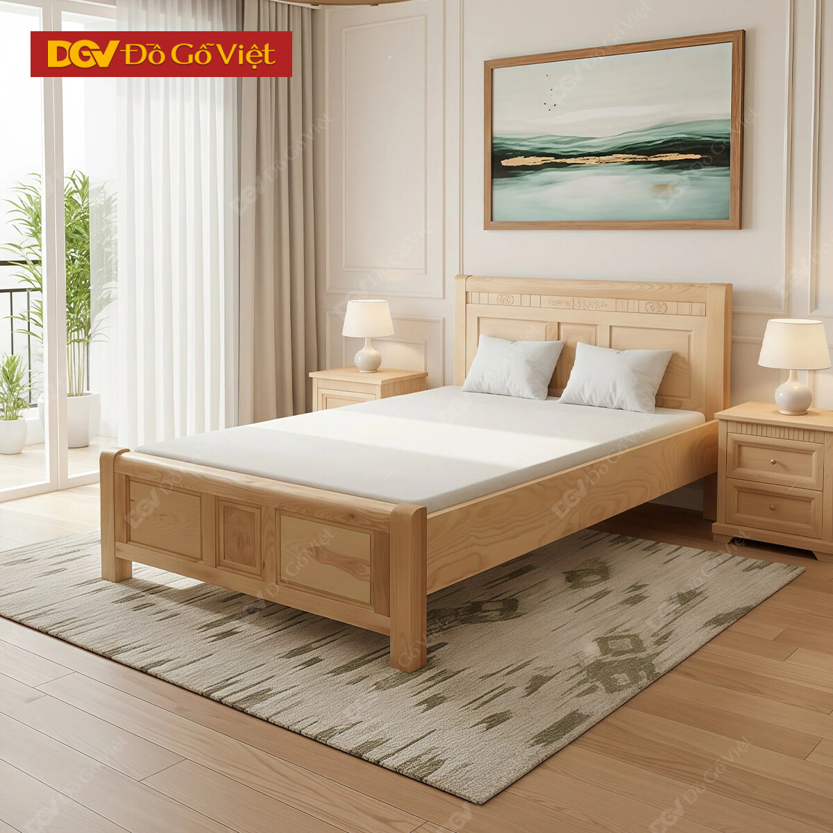 Giường Gỗ Sồi Đẹp Kiểu Hộp Mặt Pano Thiết Kế Hiện Đại