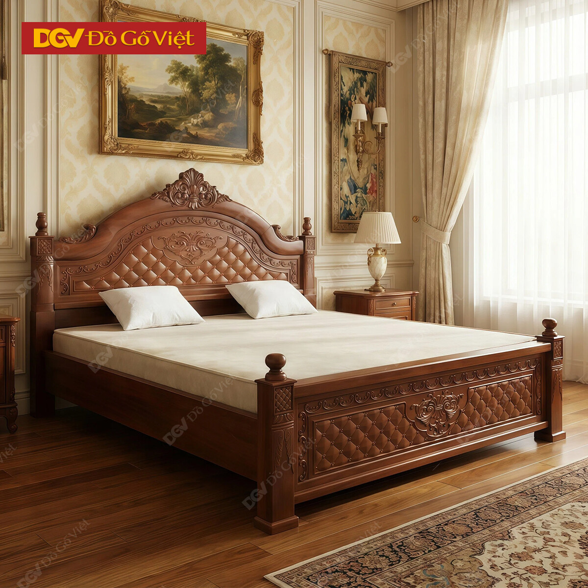 Mẫu Giường Ngủ Gỗ Xoan Đào Sang Trọng Vòm Sò Chạm Gấm Caro
