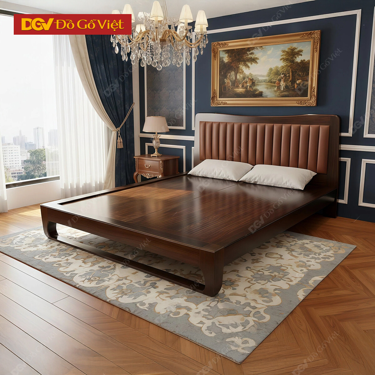 Giường Gỗ Hiện Đại Kiểu Đầu Bằng Chạy Chỉ Đẹp Tinh Tế