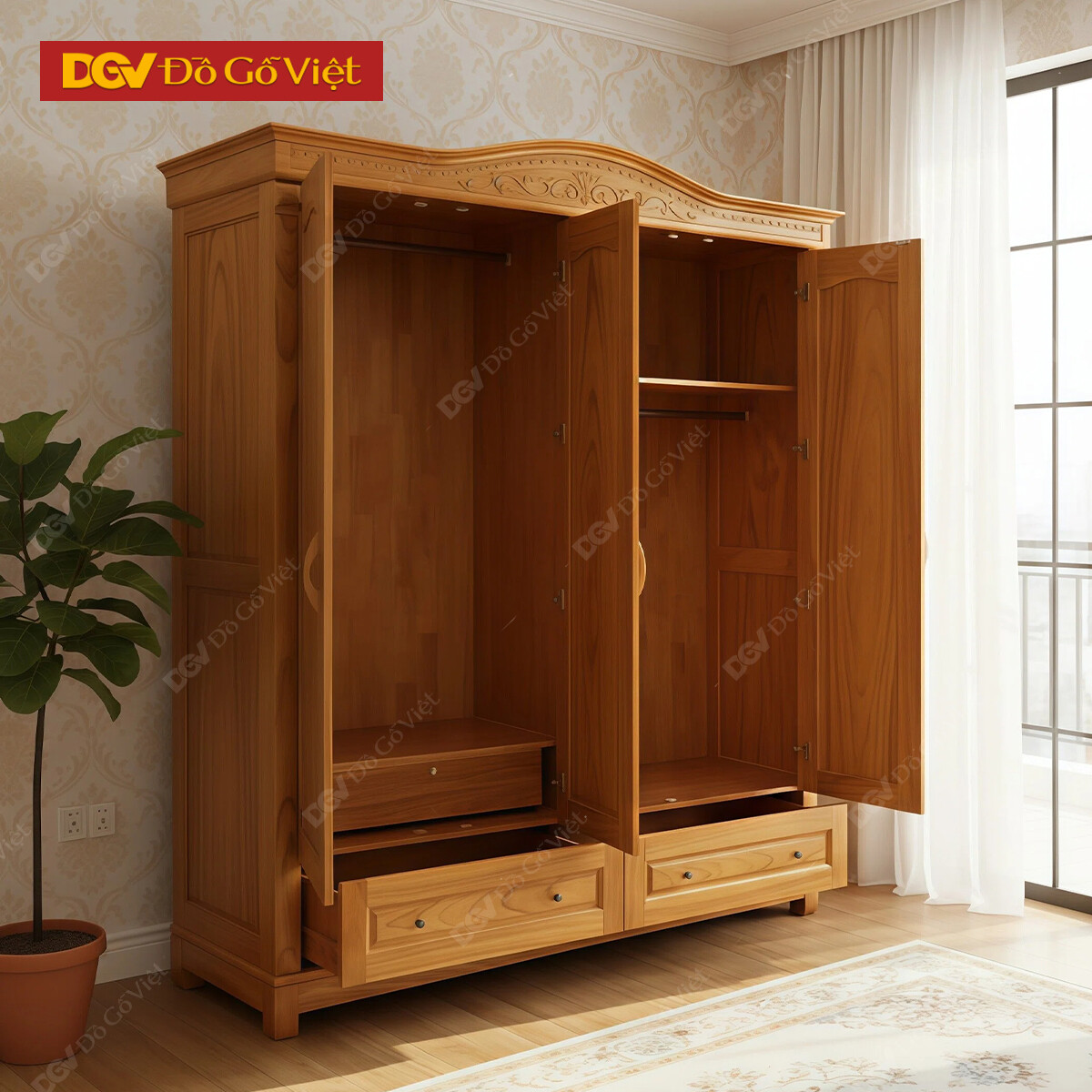 Mẫu Tủ Áo Gỗ Gõ Đỏ Mẫu Vòm 4 Cánh Trơn Kèm Ngăn Kéo Ngoài