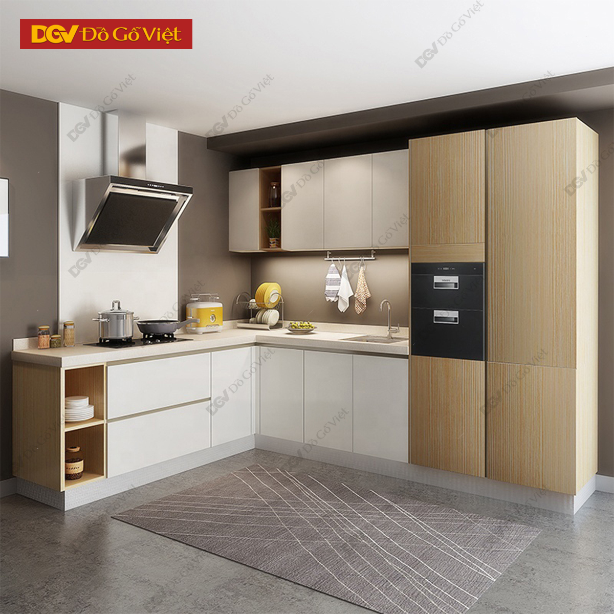 Tủ Bếp Gỗ Công Nghiệp Chữ L Nhiều Ngăn Tiện Dụng