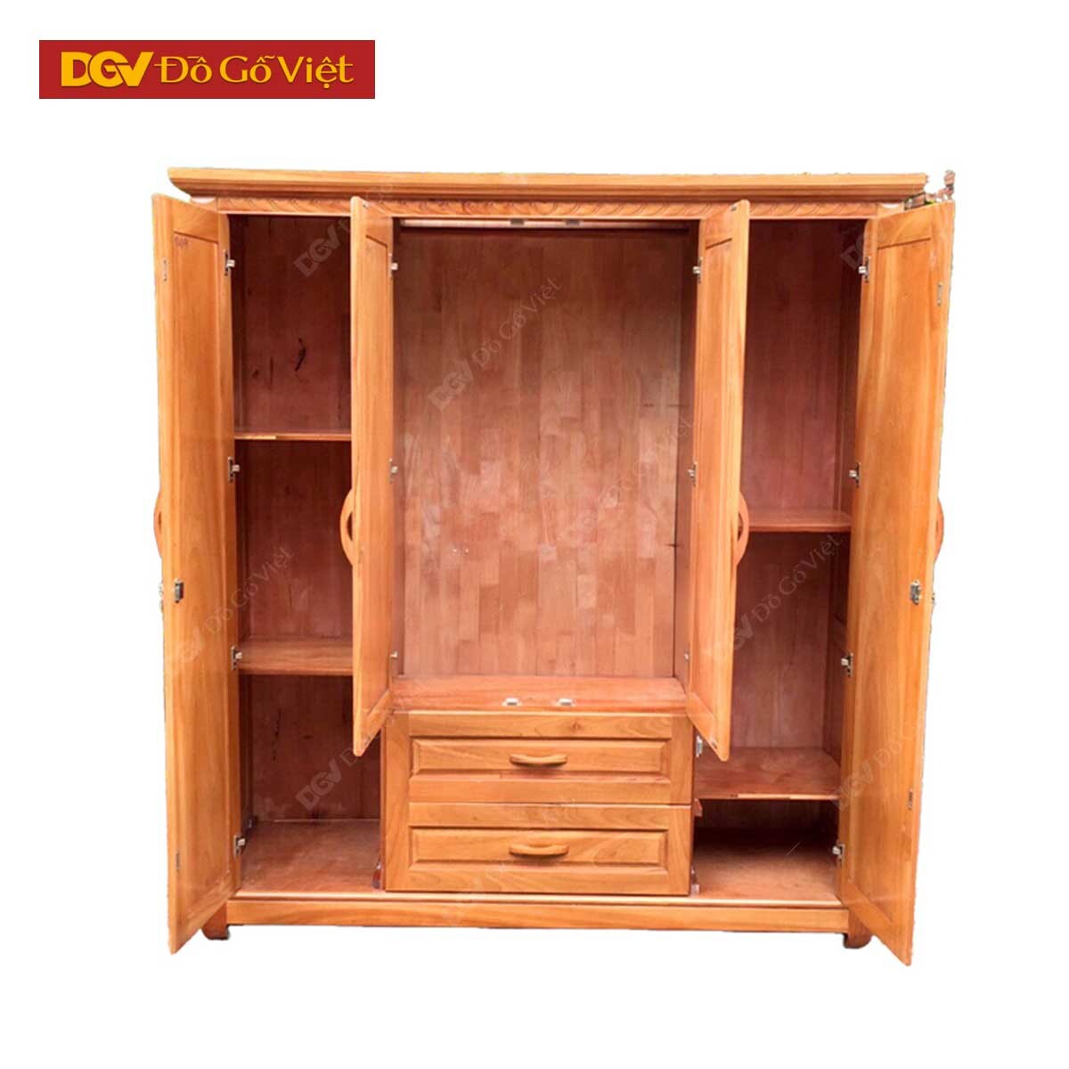 Mẫu Tủ Quần Áo Gỗ Tự Nhiên 4 Cánh 2 Ngăn Hộc Kéo Lớn