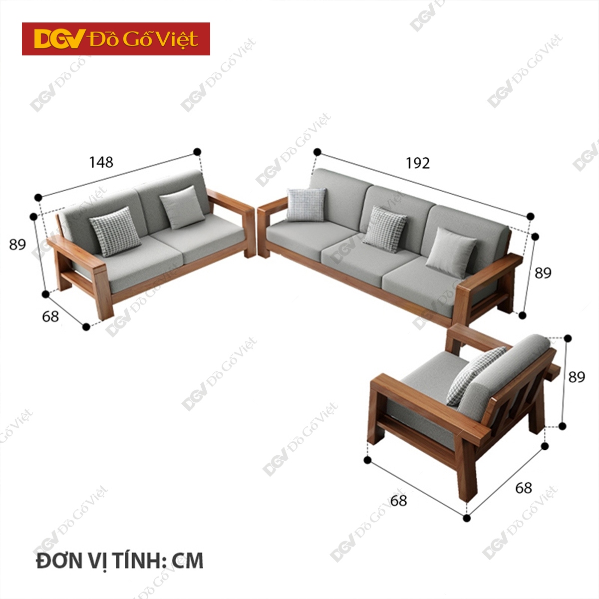 • Ghế đơn: Dài 68cm x Rộng (lọt lòng) 60cm x Cao 89cm.