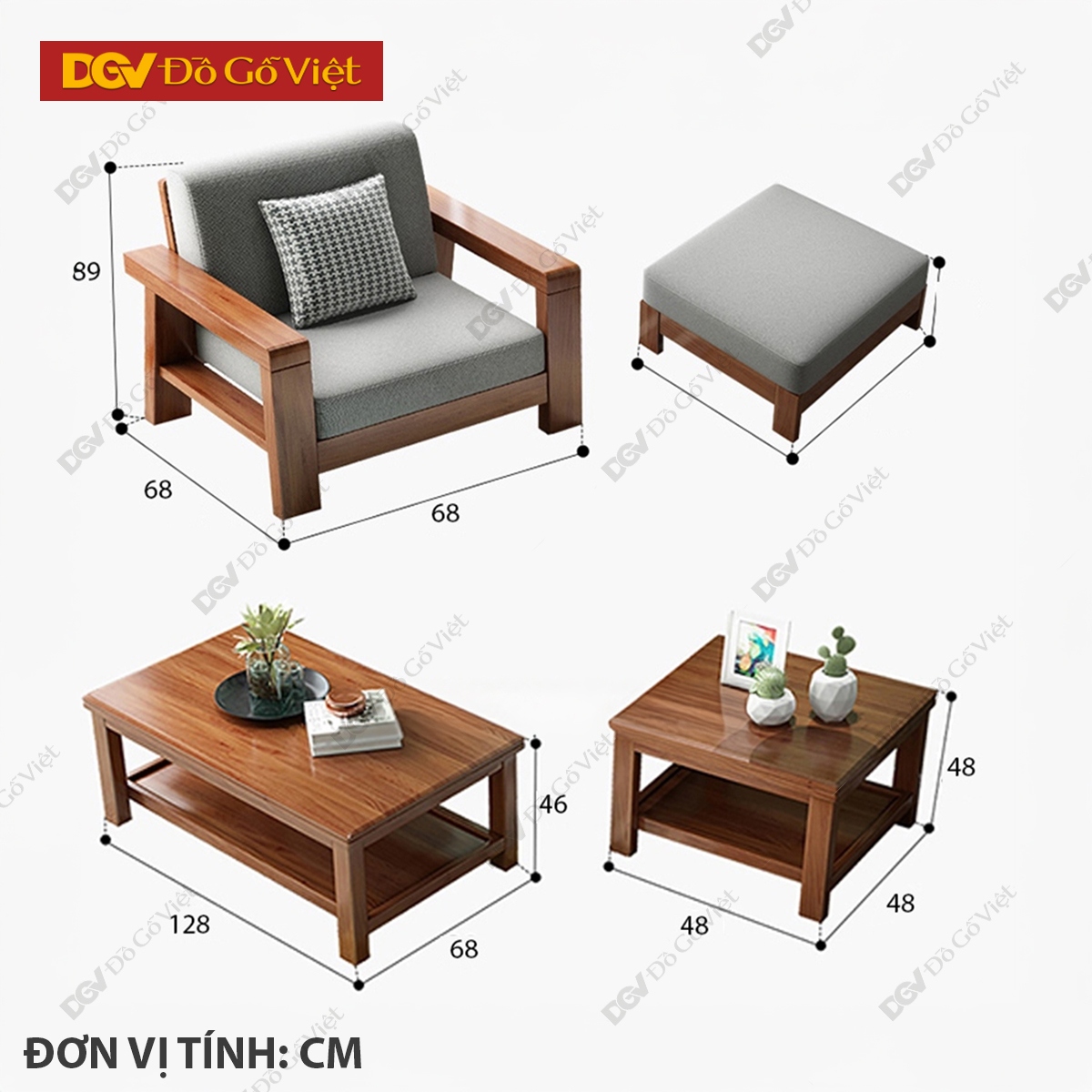 • Bàn trà: Dài 128cm x Rộng 68cm x Cao 48cm.