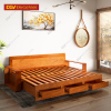 Sofa Giường Kéo Gỗ Gõ Đỏ Mặt Ngồi Dạng Nan Kèm Hộc Kéo