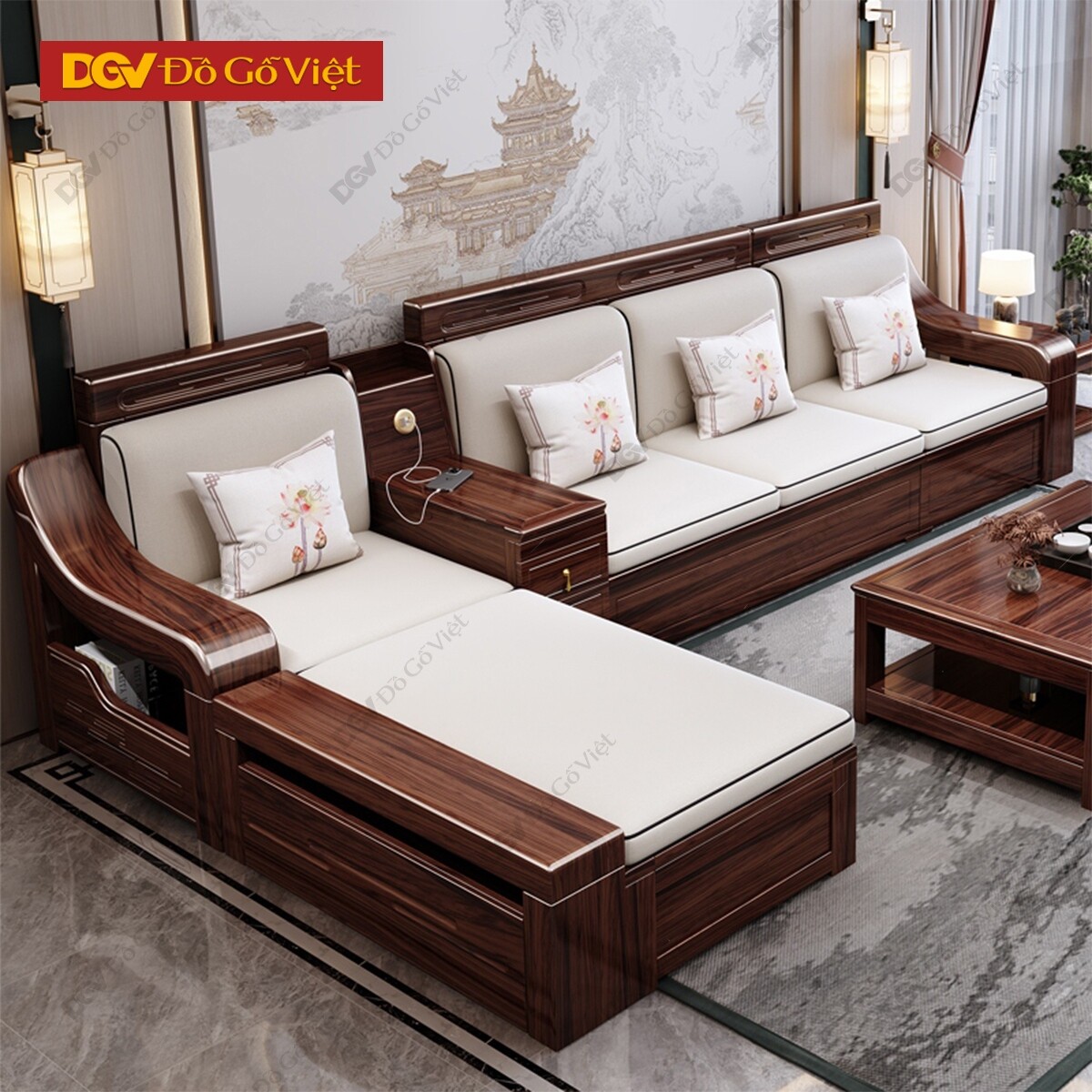 Sofa Góc L Có Kệ Phòng Khách Gỗ Căm Xe Tự Nhiên Bền Đẹp