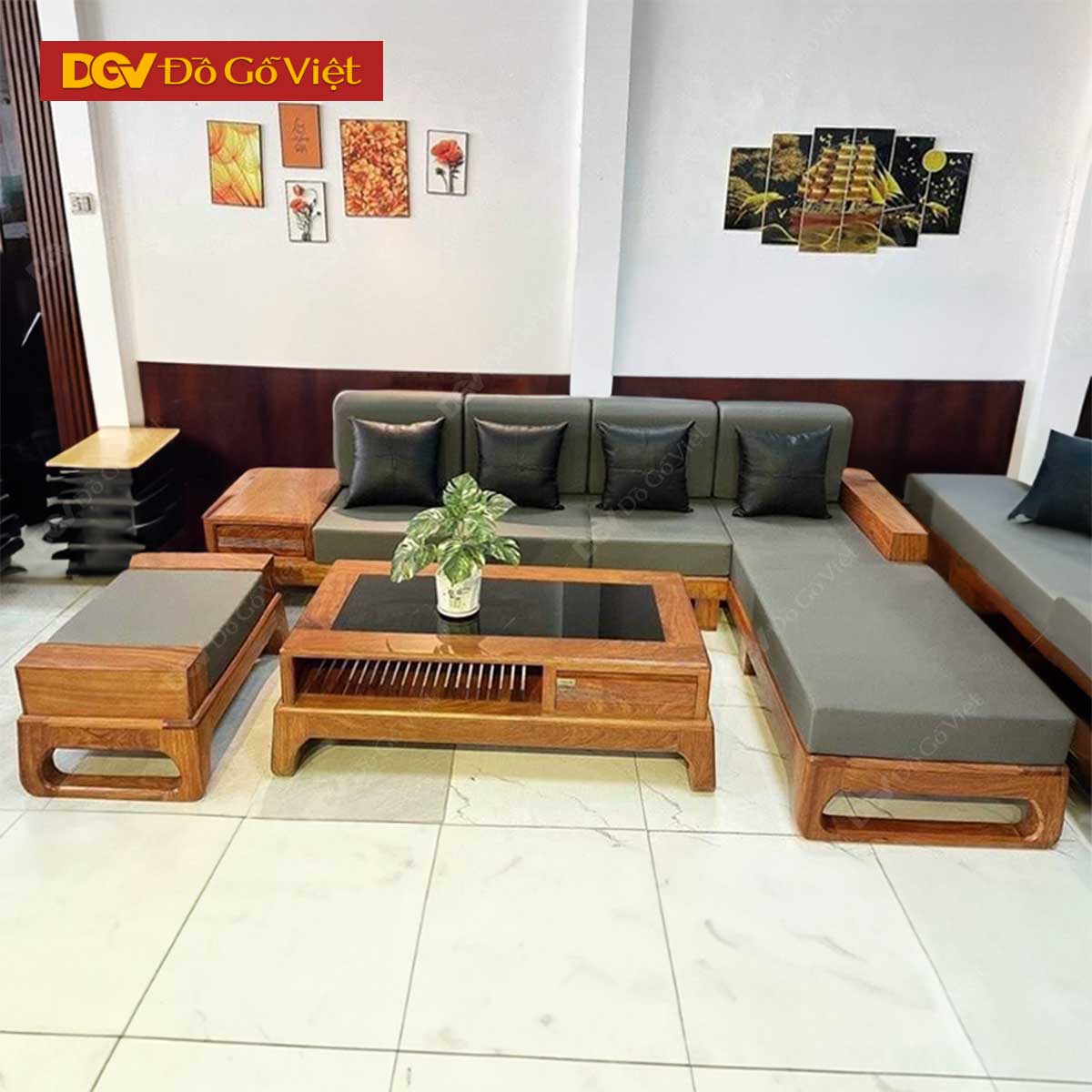 Bộ Bàn Ghế Sofa Kiểu Góc L Gõ Đỏ Phong Cách Trẻ Trung