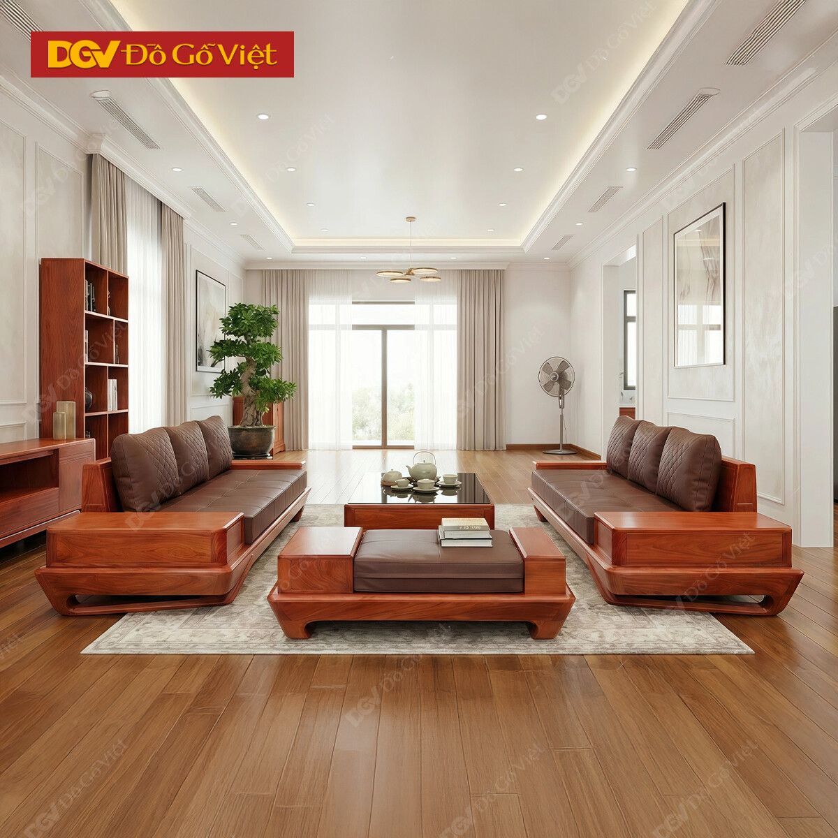 Bộ Sofa 2 Văng 100% Gỗ Hương Đá Hiện Đại Cho Phòng Khách