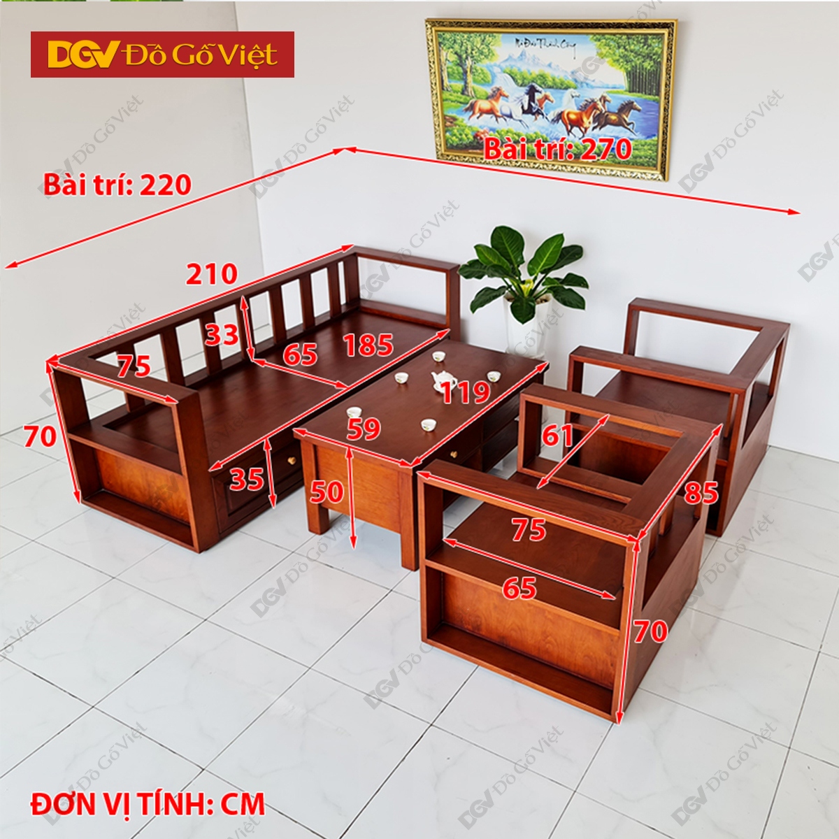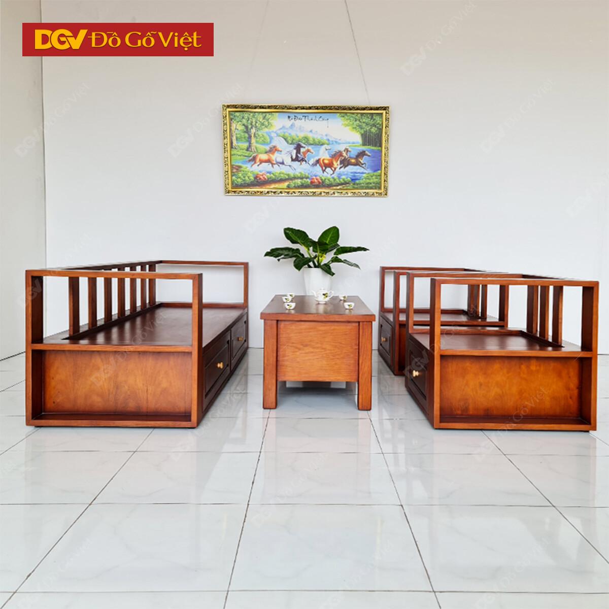 Màu sắc nâu đỏ của bộ bàn ghế gỗ tự nhiên này sẽ giúp không gian phòng khách của bạn trở nên gần gũi, ấm cúng hơn đồng thời tạo được vẻ đẹp sang trọng đẳng cấp. Đặc biệt bộ bàn ghế sofa còn được tô điểm thêm bằng những đường vân gỗ sồi tự nhiên hình núi mềm mại tôn lên giá trị thẩm mỹ cho sản phẩm.