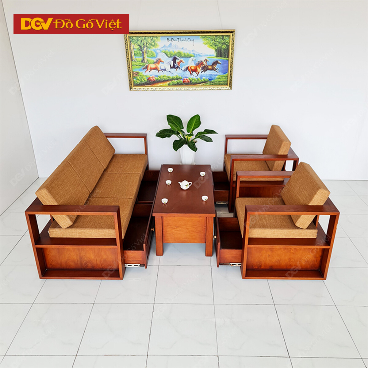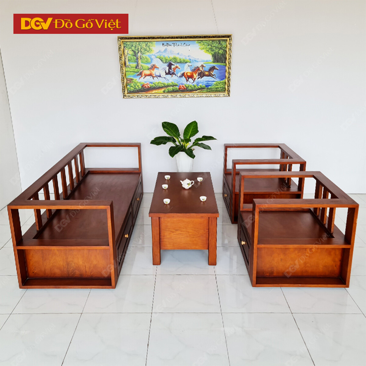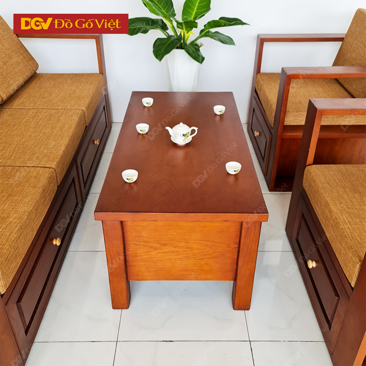 Tính tiện nghi của bộ bàn ghế gỗ sồi nga phòng khách cũng được đề cao với sự kết hợp giữa ghế ngồi, bàn trà và ngăn tủ lưu trữ. Không chỉ bên dưới mặt bàn trà có các ngăn, các giá đựng đồ đạc mà mỗi phần khung ghế cũng được tích hợp thêm những hộc tủ thông minh. Hệ thống ray trượt 3 lớp giảm chấn hiệu quả cho chuyển động êm ái và an toàn.