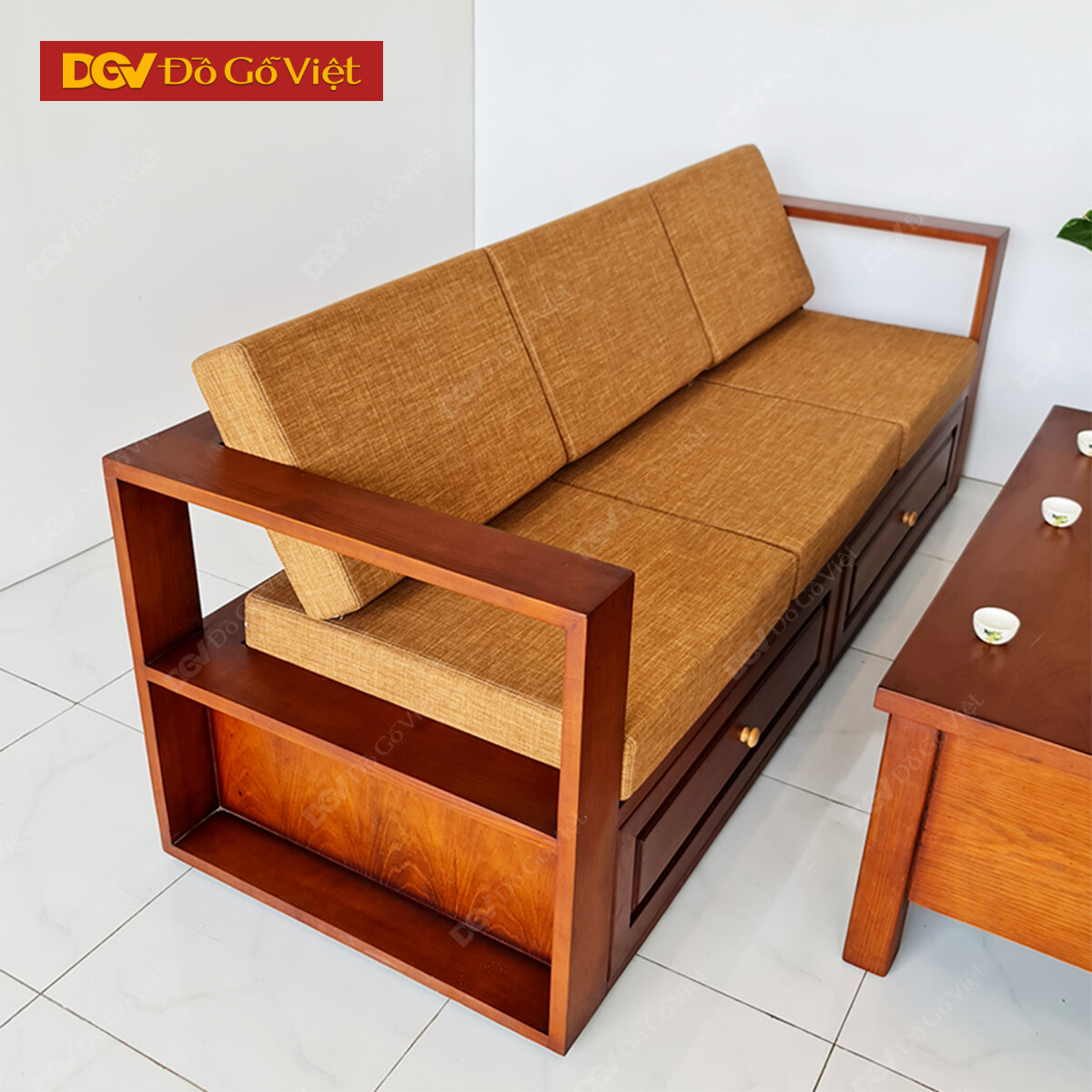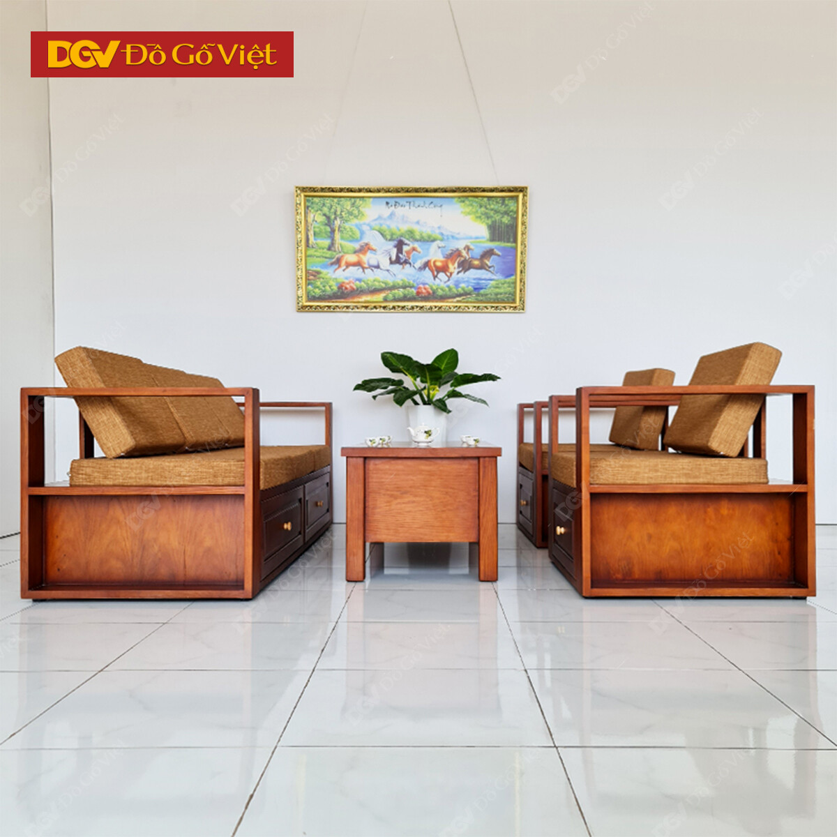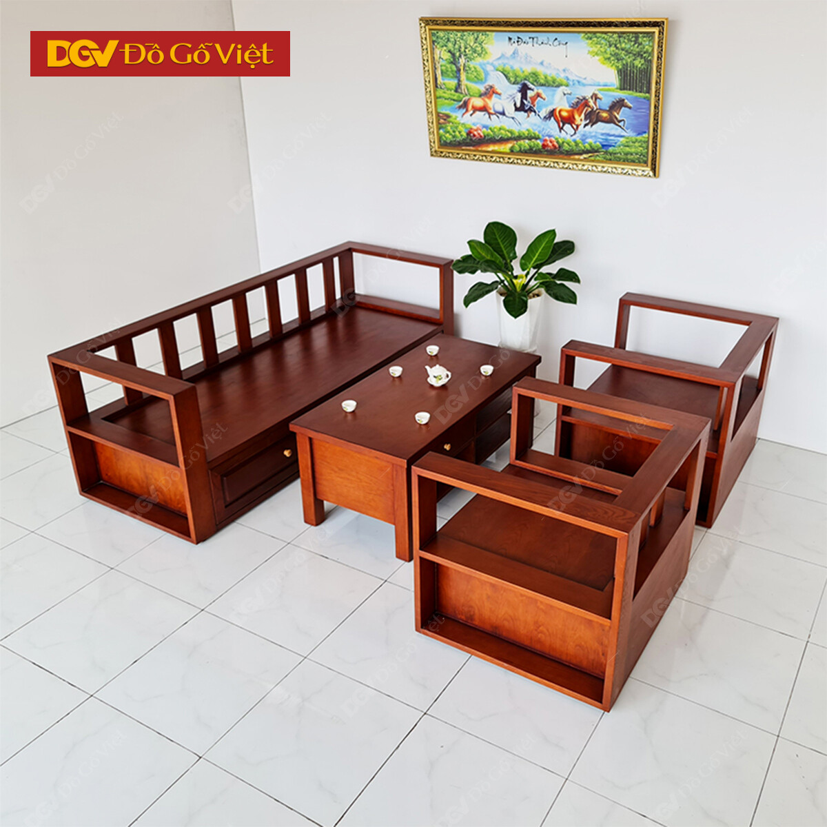 Tính tiện nghi của bộ bàn ghế gỗ sồi nga phòng khách cũng được đề cao với sự kết hợp giữa ghế ngồi, bàn trà và ngăn tủ lưu trữ. Không chỉ bên dưới mặt bàn trà có các ngăn, các giá đựng đồ đạc mà mỗi phần khung ghế cũng được tích hợp thêm những hộc tủ thông minh. Hệ thống ray trượt 3 lớp giảm chấn hiệu quả cho chuyển động êm ái và an toàn.