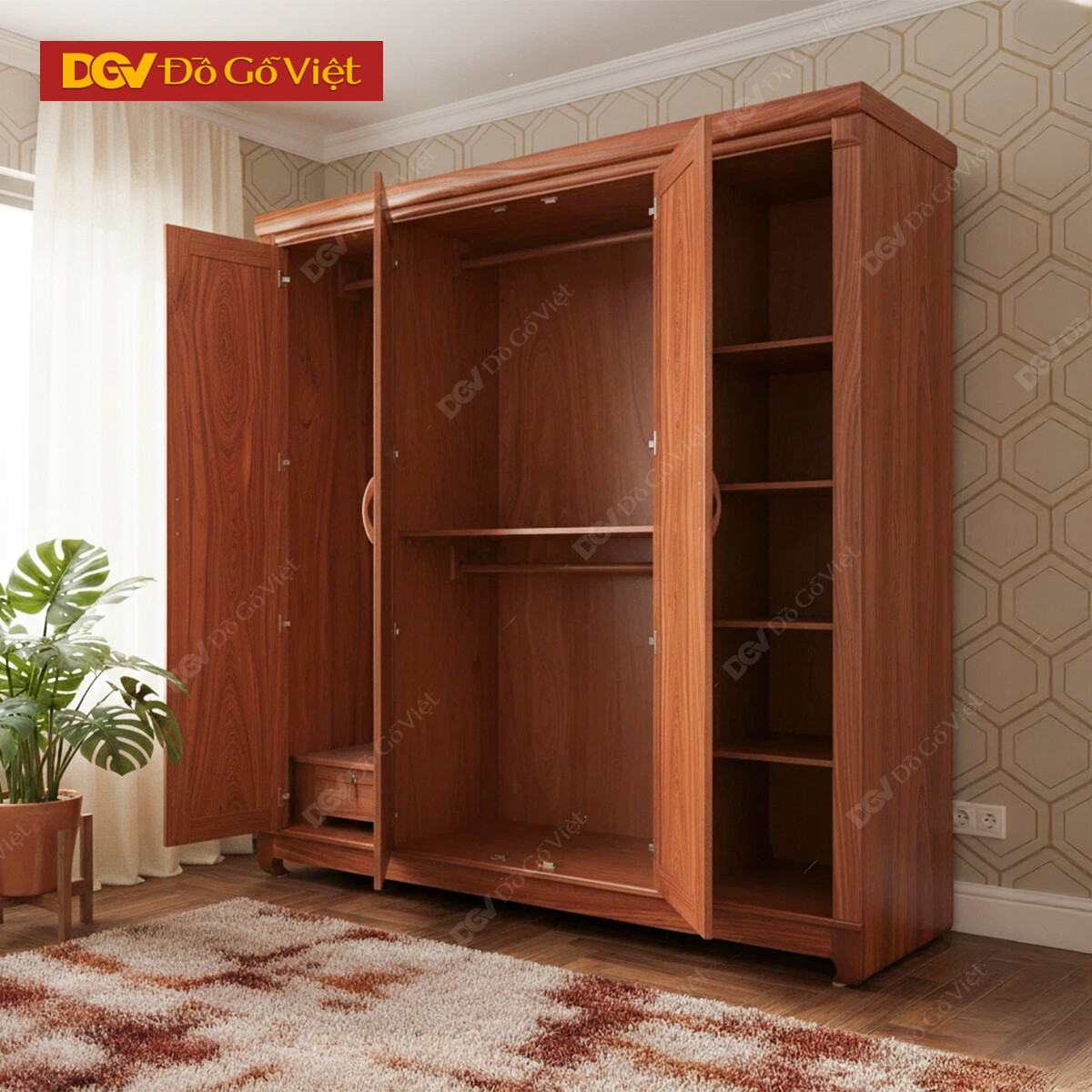Tủ Quần Áo 4 Cánh Gỗ Veneer Hương Đá Pano Cong Đẹp Bền