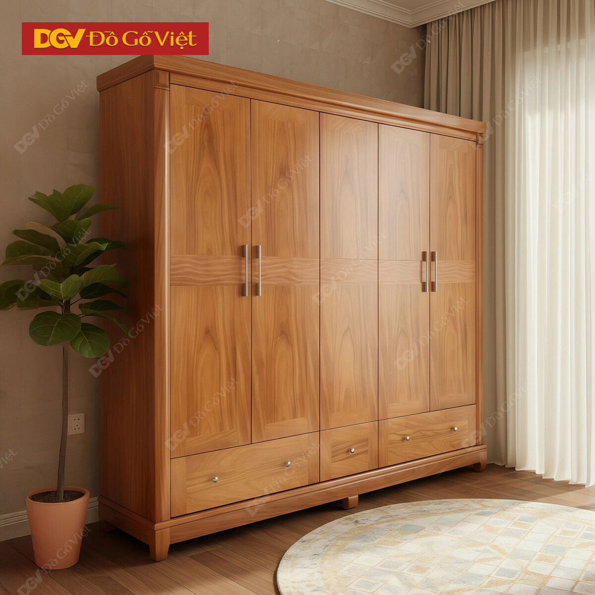 Mẫu Tủ Áo Gỗ Gõ Đỏ Mẫu Vòm 4 Cánh Trơn Kèm Ngăn Kéo Ngoài