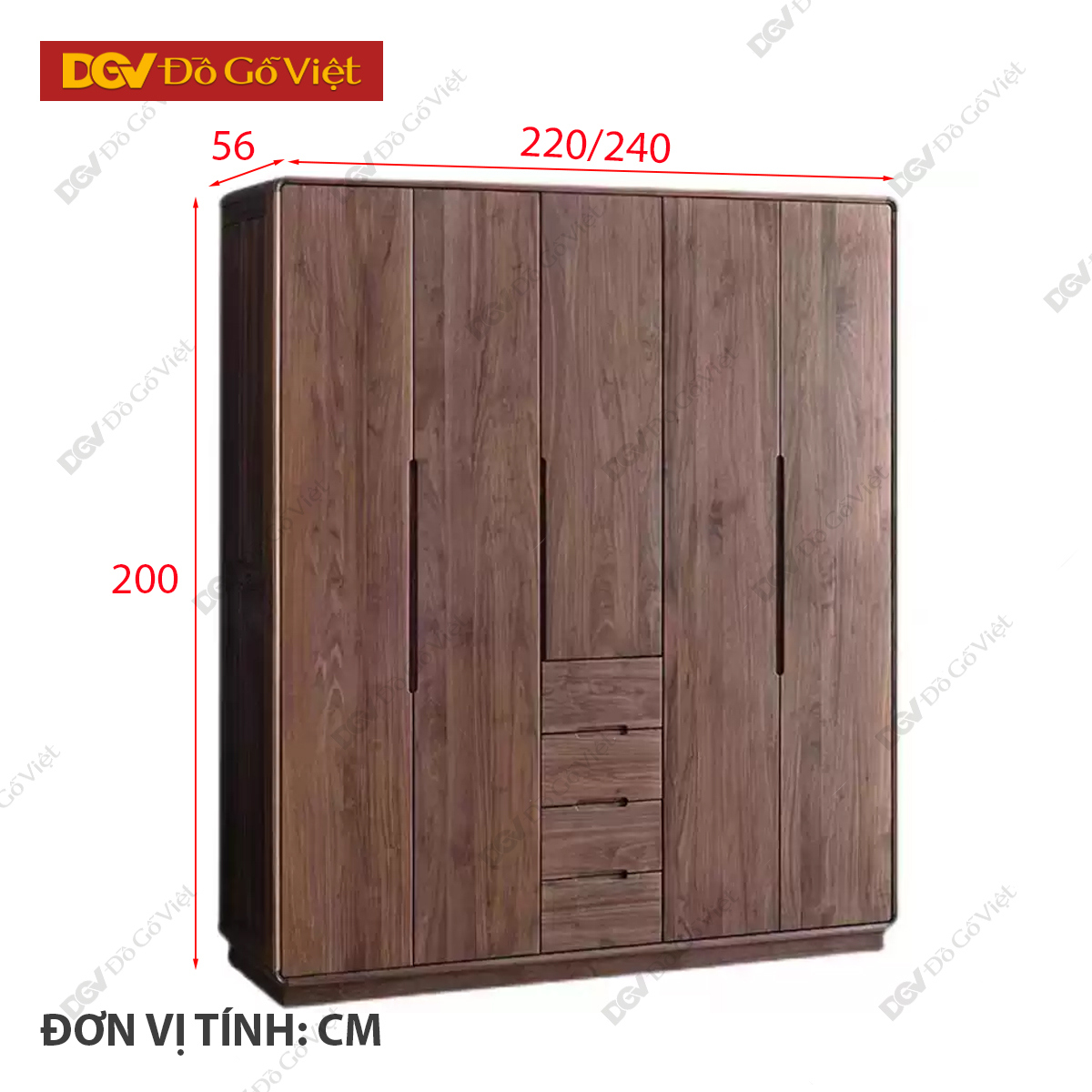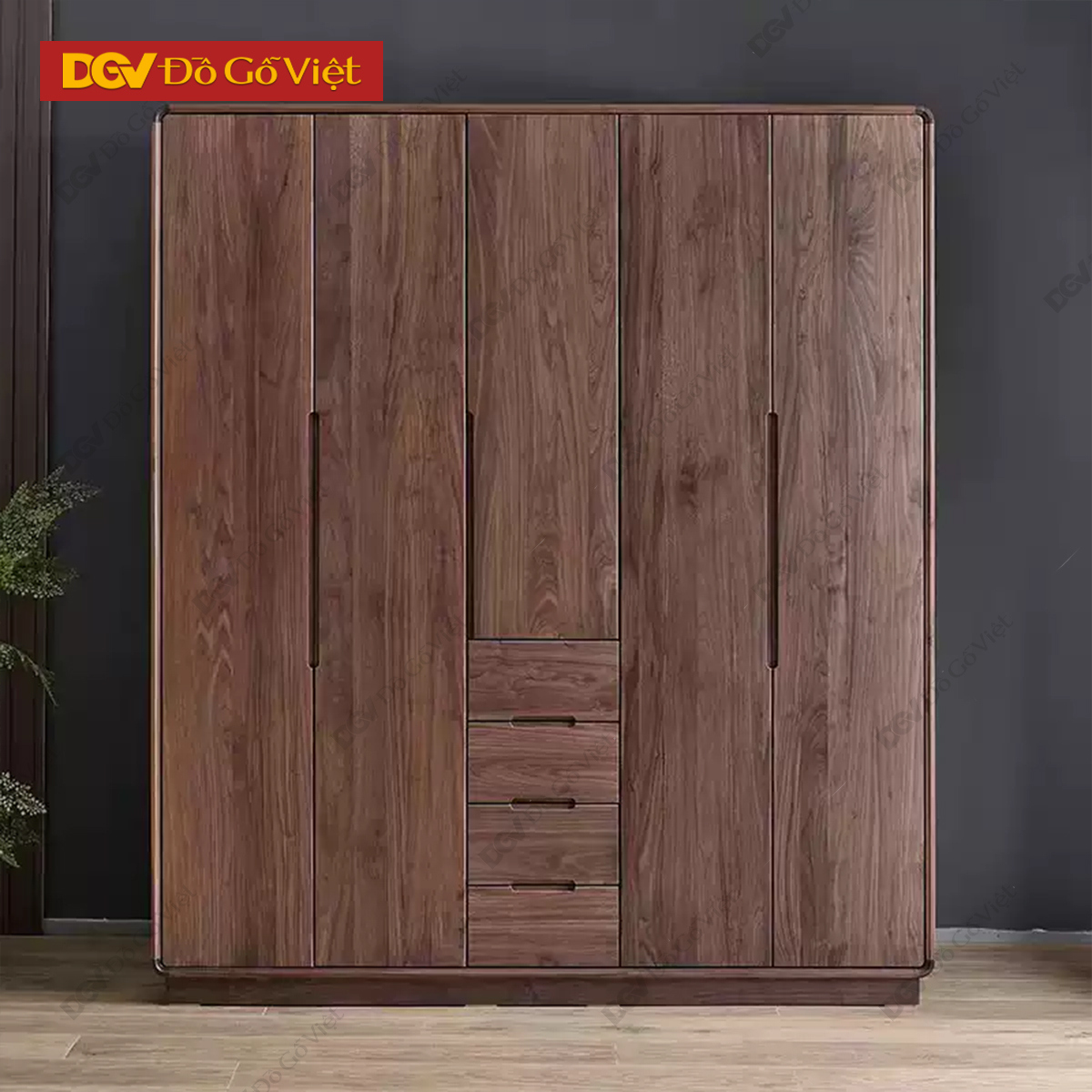 Tủ Áo 5 Cánh Gỗ Sồi Mỹ Màu Óc Chó Đẹp Có Hộc Kéo Giá Tốt
