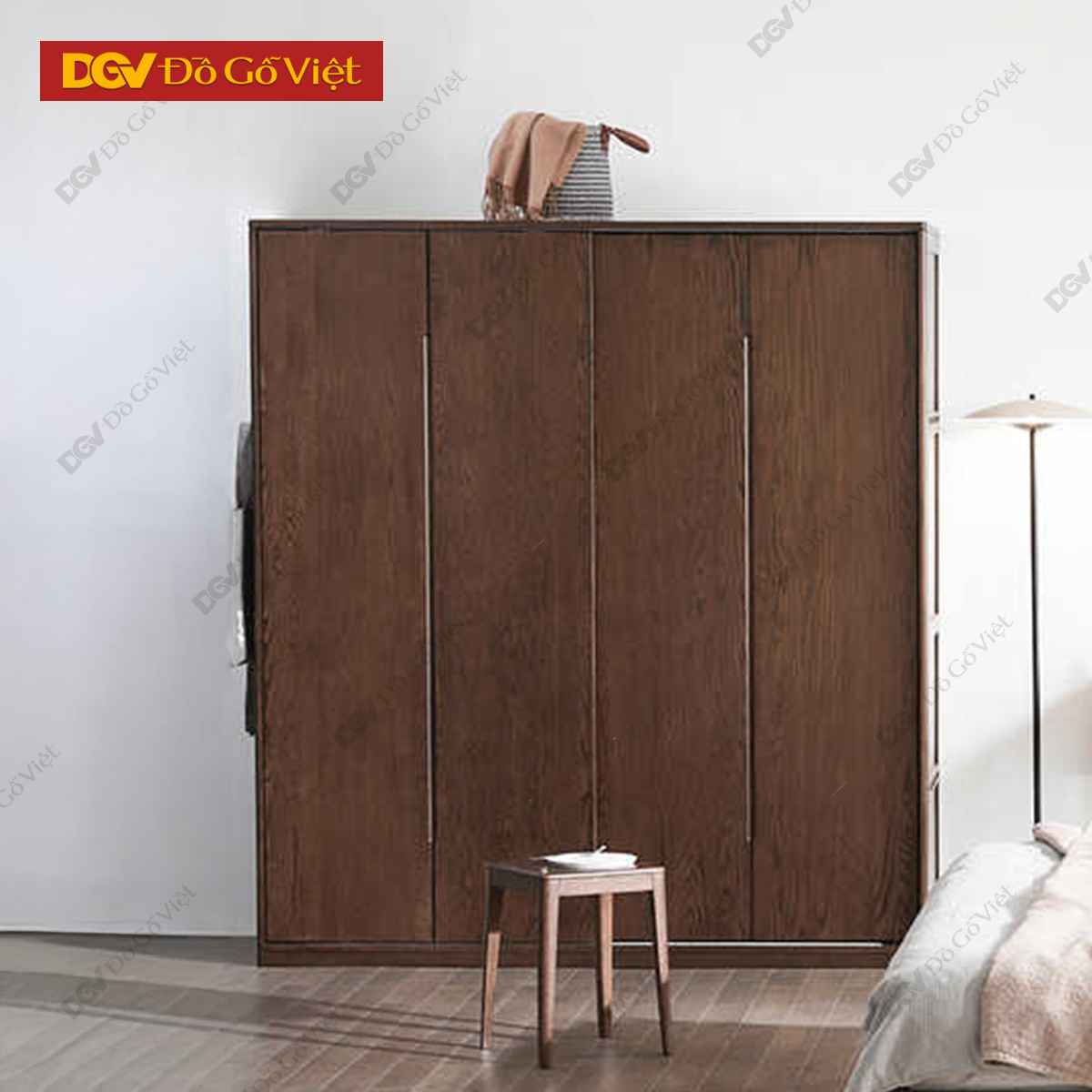 Tủ Áo Gỗ Cao Su Veneer Sồi 4 Cánh Dáng Trơn Tối Giản