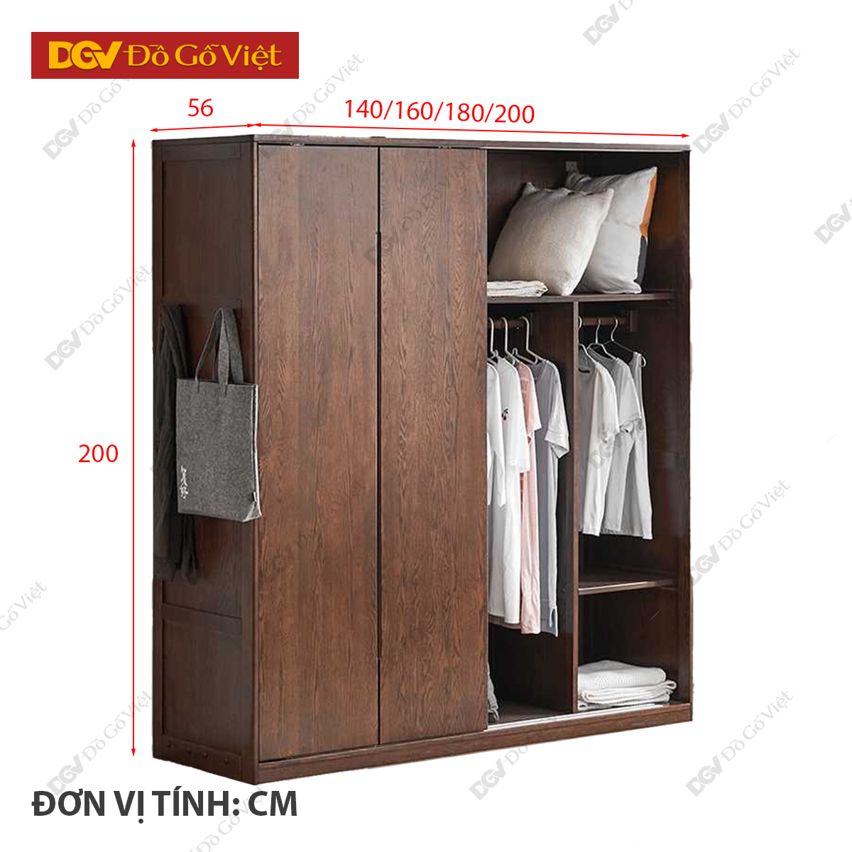 Tủ Áo Gỗ Cao Su Veneer Sồi 2 Cánh Cửa Lùa Thanh Lịch Giá Rẻ