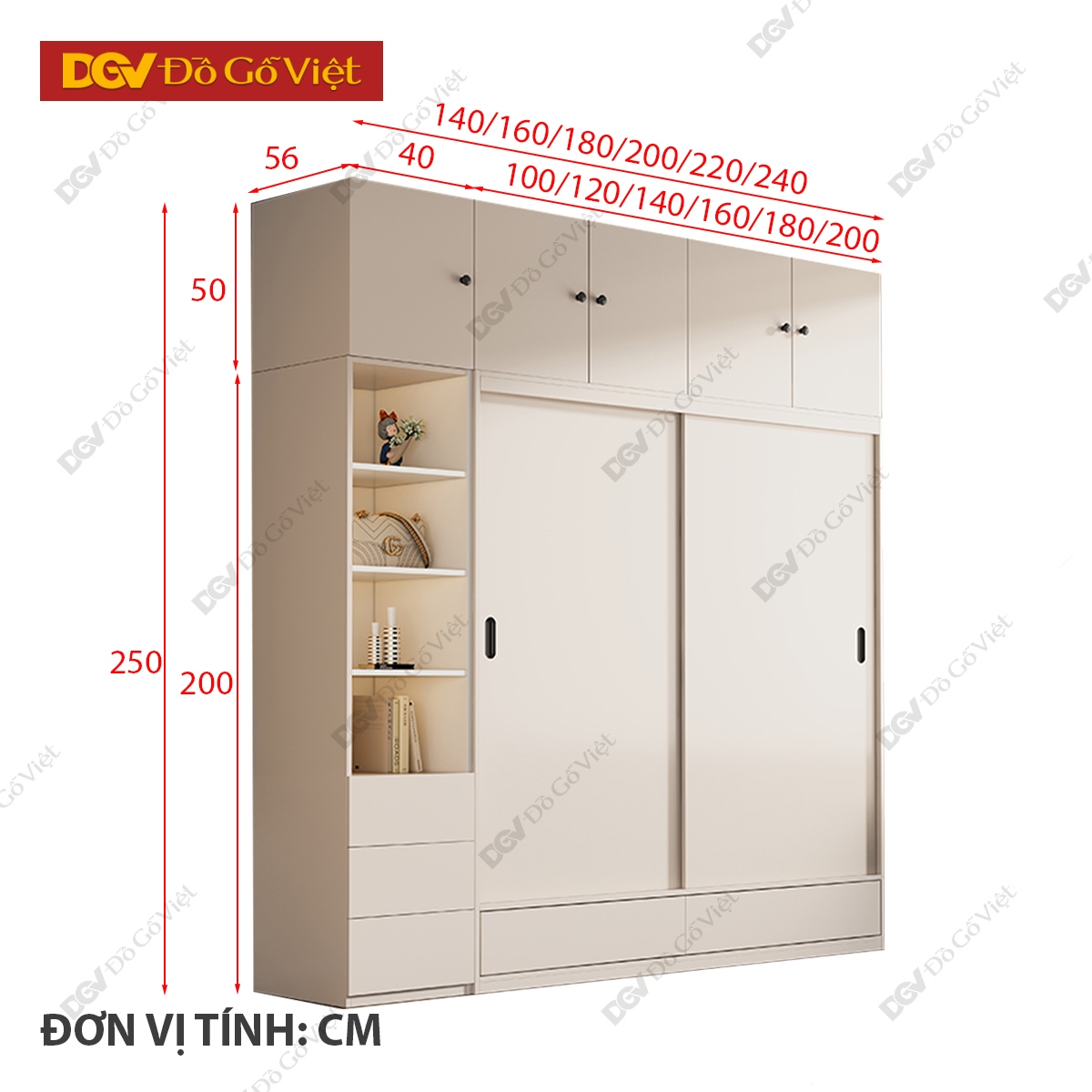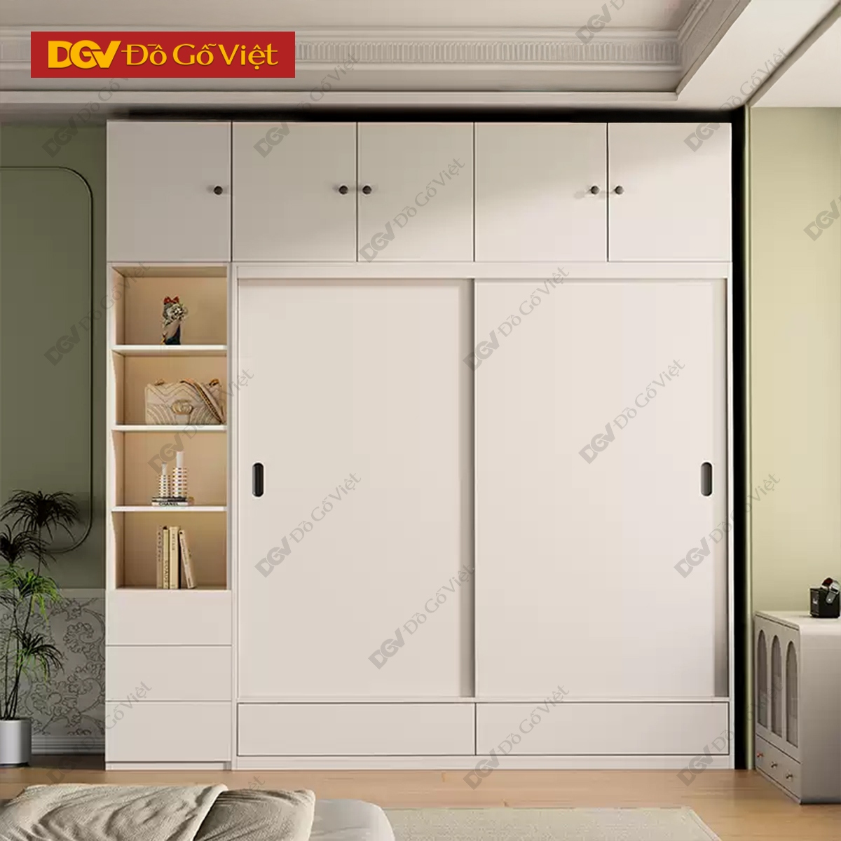 Tủ Áo Gỗ MDF Cửa Lùa Màu Trắng Có Kệ Trang Trí Hiện Đại