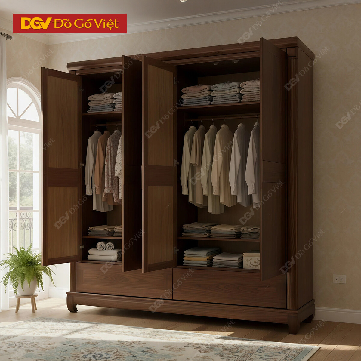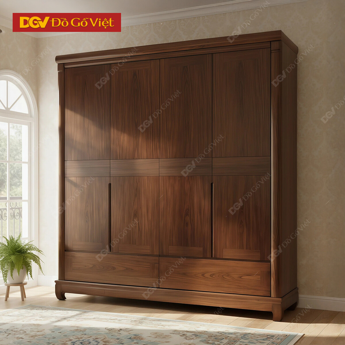 Tủ Áo Gỗ Óc Chó 4 Cánh Kèm Nóc Và Ngăn Kéo Tiện Dụng