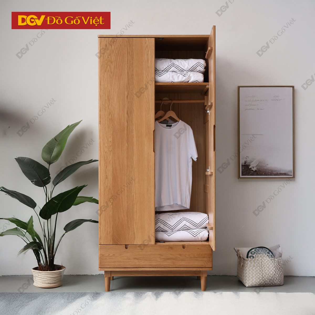 Tủ Áo Gỗ Sồi 2 Cánh Chân Cao Nhỏ Gọn Cho Phòng Ngủ Hẹp
