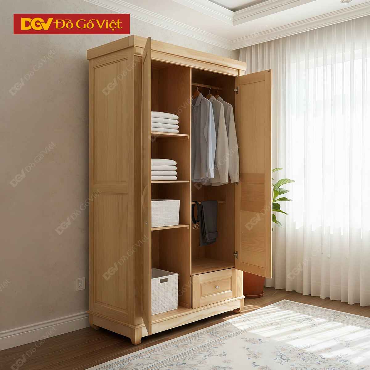 Tủ Áo Gỗ Sồi Nga Màu Tự Nhiên Mẫu Đồng Tiền Thanh Lịch
