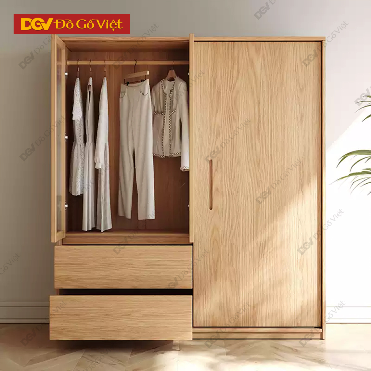 Tủ Áo Quần Gỗ Sồi Tự Nhiên 3 Buồng 4 Cánh Bền Đẹp Giá Rẻ