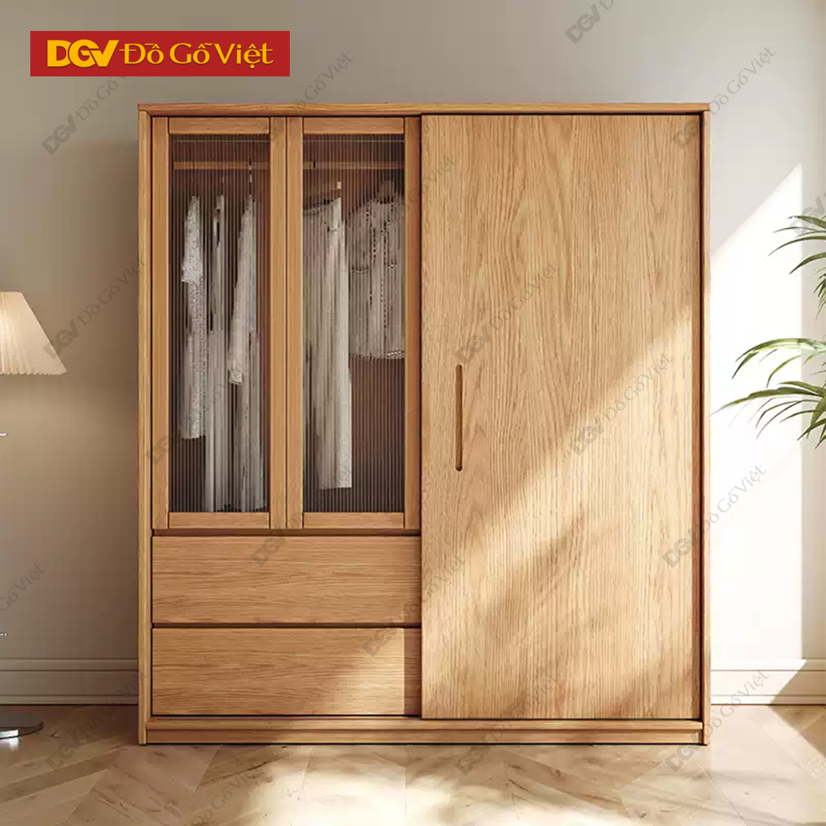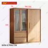 Tủ Áo Gỗ Tự Nhiên Vân Sồi Cửa Lùa Phối Cánh Kính Đẹp