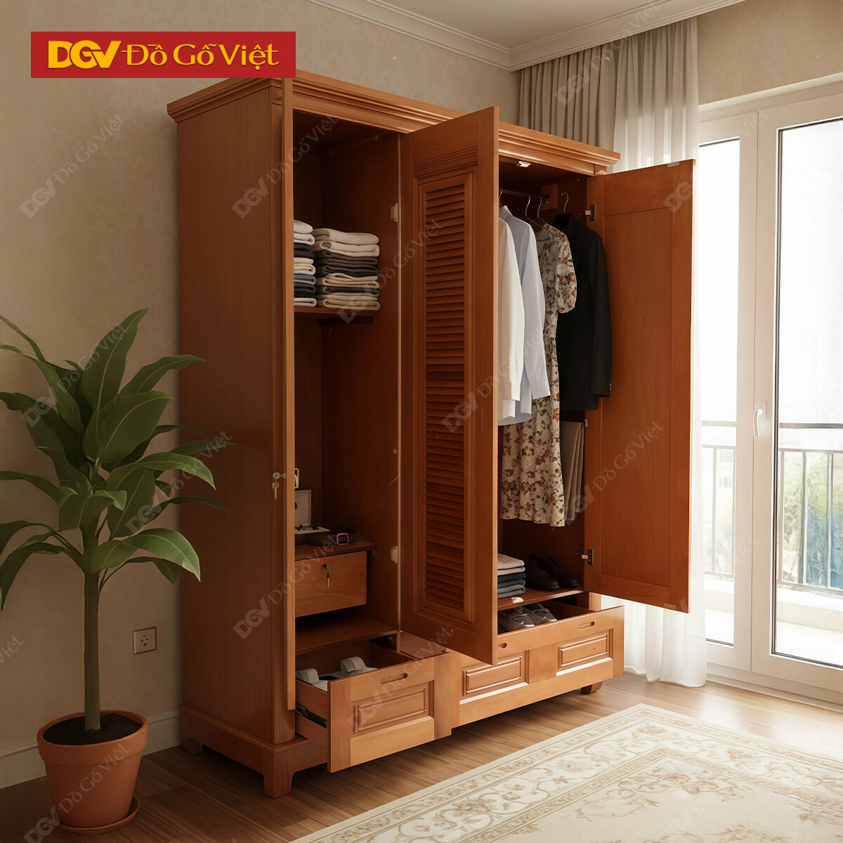 Tủ Quần Áo Gỗ Xoan Đào 3 Cánh Phong Cách Cổ Điển