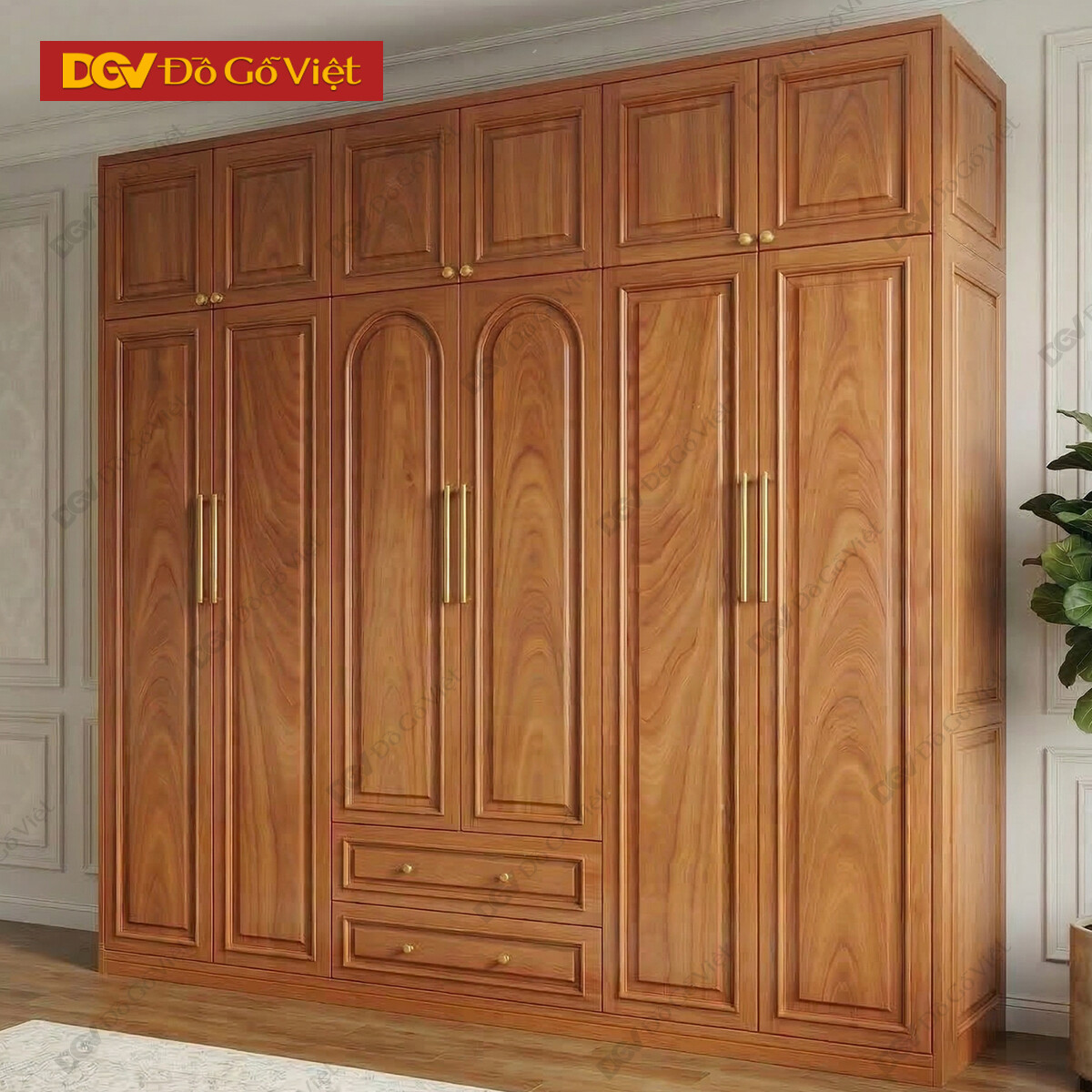 Tủ Áo Gỗ Gõ Đỏ Tân Cổ Điển 6 Cánh Có Nóc Và Hộc Kéo Ngoài